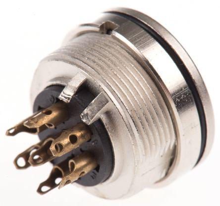 This is 5 Pole Din Socket Socket DIN EN 60529 5A 250 V ac IP68 manufactured by Lumberg. The manufacturer part number is 0305 05-1. The product has a current rating of 5a. Its DIN number is din en 60529 . The product is available in panel mount configuration. It is IP rated with ip68. Whereas, the minimum operating temperature of the product is -40°c. In addition, female is the available "Gender" of the product. It has straight body orientation. Moreover, the product has a nominal 250 v ac voltage rating. The high-quality gold over silver is used as contact plating material. It allows solder termination method. The product contains 5 contacts. It has a maximum operating temperature of 85°c. The product is made from sturdy brass materials.