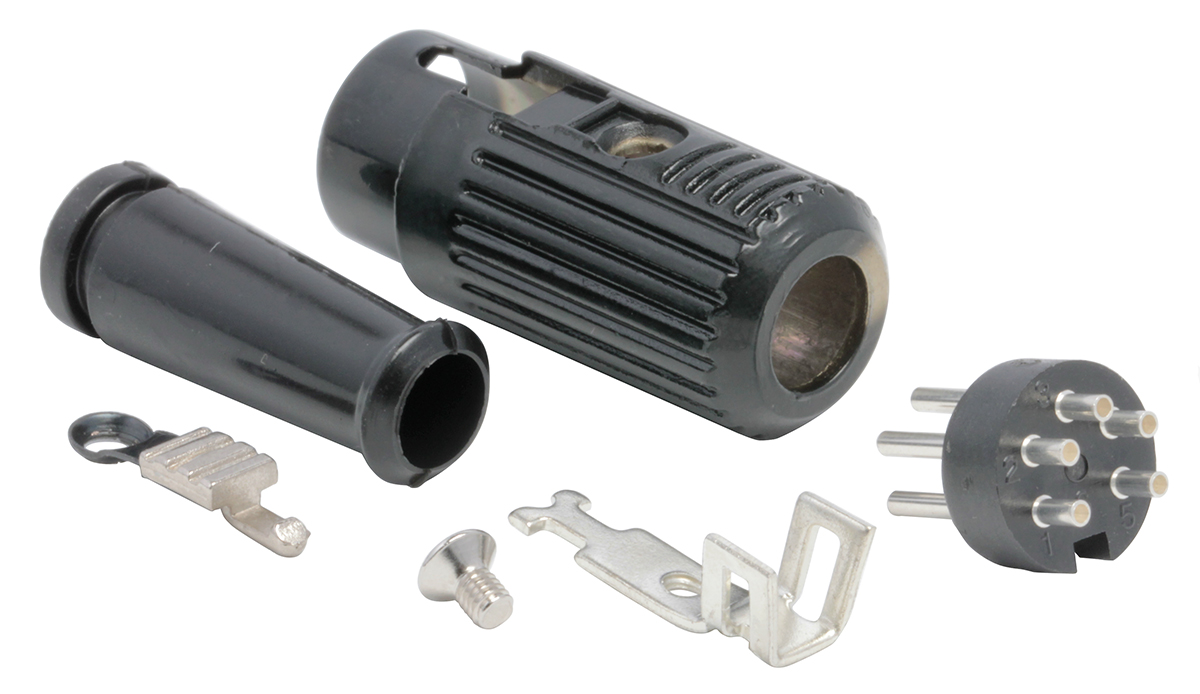 This is YE-118XMB Series 5 Pole Din Plug Plug 1A 100 V ac Push Lock manufactured by RS Pro. The manufacturer part number is 490-945. The product has a current rating of 1a. It is a type of push lock mating. The product is available in cable mount configuration. Moreover, the product has a nominal 100 v ac voltage rating. In addition, male is the available "Gender" of the product. It has straight body orientation. The product also features robust abs housing material. The high-quality silver is used as contact plating material. The product ye-118xmb, is a highly preferred choice for users. Moreover, the product is shielded . The product contains 5 contacts. The connector has standard size. The product is made from sturdy brass materials.