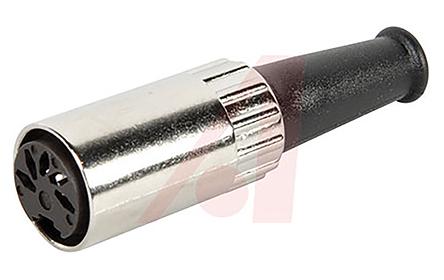 This is 06AL Series 5 Pole Din Socket 3A 34 V dc Snap Lock manufactured by Switchcraft. The manufacturer part number is 06AL5FX. The product has a current rating of 3a. It is a type of snap lock mating. The product is available in cable mount configuration. Moreover, the product has a nominal 34 v dc voltage rating. In addition, female is the available "Gender" of the product. It has straight body orientation. The product also features robust die cast zinc alloy housing material. The high-quality tin is used as contact plating material. The product 06al, is a highly preferred choice for users. Moreover, the product is shielded . The product contains 5 contacts.