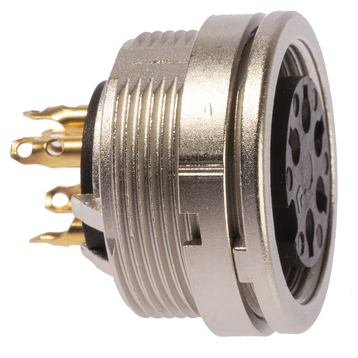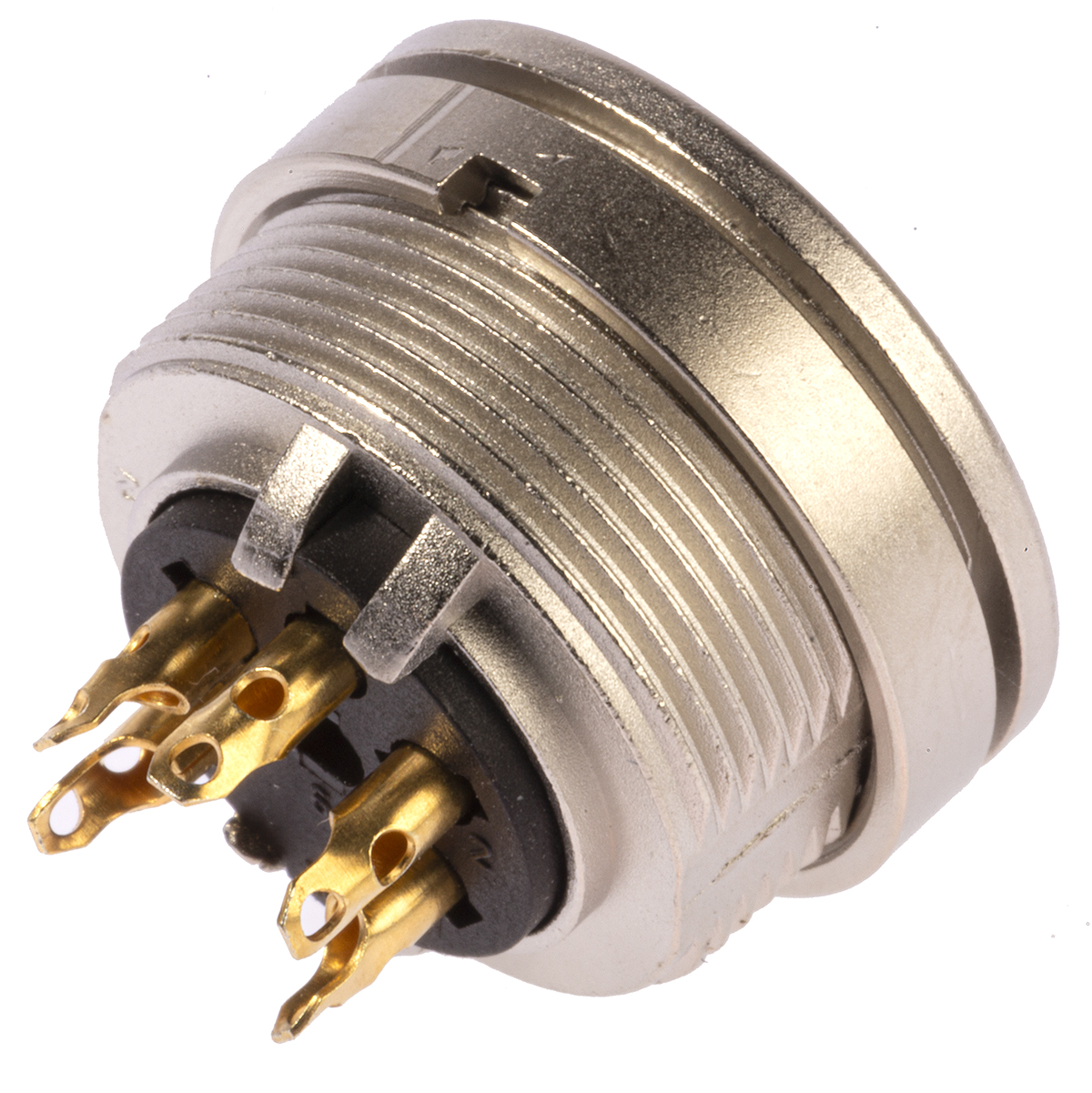 This is KFV Series 5 Pole Din Socket Socket DIN EN 60529 5A 250 V ac IP40 manufactured by Lumberg. The manufacturer part number is KFV 50/6. The product has a current rating of 5a. Its DIN number is din en 60529 . The product is available in panel mount configuration. It is IP rated with ip40. In addition, female is the available "Gender" of the product. It has straight body orientation. Moreover, the product has a nominal 250 v ac voltage rating. It allows solder termination method. The connector has m16 size. The high-quality gold over silver is used as contact plating material. The product kfv, is a highly preferred choice for users. The product contains 5 contacts. It has a maximum operating temperature of +85°c. Whereas, the minimum operating temperature of the product is -40°c. The product is made from sturdy brass materials.
