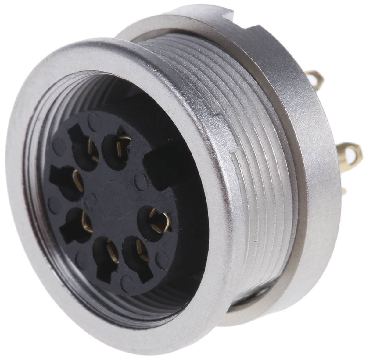 This is KFV Series 7 Pole Din Socket Socket DIN EN 60529 5A 60 V ac IP40 manufactured by Lumberg. The manufacturer part number is KFV 71. The product has a current rating of 5a. Its DIN number is din en 60529 . The product is available in panel mount configuration. It is IP rated with ip40. In addition, female is the available "Gender" of the product. It has straight body orientation. Moreover, the product has a nominal 60 v ac voltage rating. It allows solder termination method. The high-quality gold over silver is used as contact plating material. The product kfv, is a highly preferred choice for users. The product contains 7 contacts. It has a maximum operating temperature of +85°c. Whereas, the minimum operating temperature of the product is -40°c. The connector has m16 size. The product is made from sturdy brass materials.
