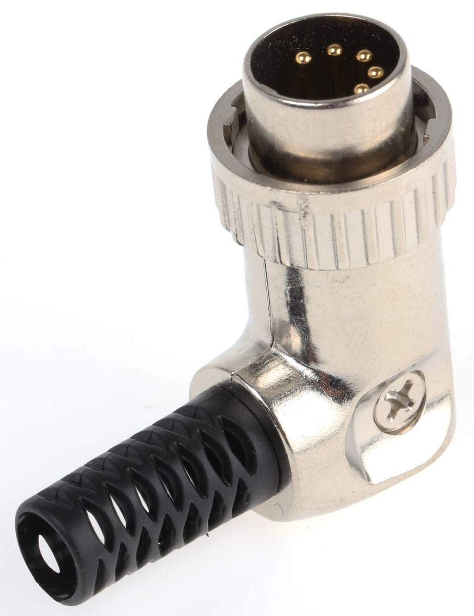 This is B-9007 Series 5 Pole Right Angle Din Plug Plug 2A 100 V Quick Connect manufactured by RS Pro. The manufacturer part number is 786-3451. The product has a current rating of 2a. It is a type of quick connect mating. The product is available in cable mount configuration. Moreover, the product has a nominal 100 v voltage rating. In addition, male is the available "Gender" of the product. It has right angle body orientation. It allows crimp termination method. The product also features robust pvc housing material. The high-quality silver is used as contact plating material. The product b-9007, is a highly preferred choice for users. The product contains 5 contacts. The connector has standard size. The product is made from sturdy bsr materials.