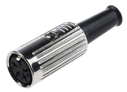 This is 4 Pole Din Socket Socket 4A 60 V ac manufactured by RS Pro. The manufacturer part number is 161-7867. The product has a current rating of 4a. Whereas, the minimum operating temperature of the product is -20°c. The product is available in cable mount configuration. Moreover, the product has a nominal 60 v ac voltage rating. In addition, female is the available "Gender" of the product. It has straight body orientation. The product also features robust nickel plated zinc housing material. The high-quality silver is used as contact plating material. It allows solder termination method. Moreover, the product is shielded . The product contains 4 contacts. It has a maximum operating temperature of +85°c. The product is made from sturdy brass materials.