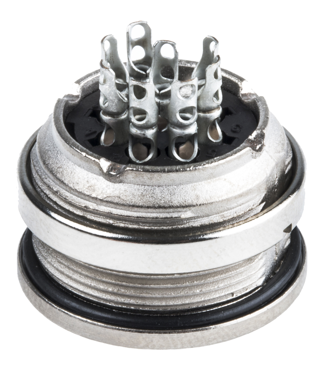 This is Amphenol C 091 D Series 8 Pole Din Socket Socket 5A 100 V ac/dc IP67 manufactured by Amphenol Industrial. The manufacturer part number is C091-31N008-1002. The product has a current rating of 5a. The high-quality silver is used as contact plating material. The product is available in panel mount configuration. It is IP rated with ip67. In addition, female is the available "Gender" of the product. It has straight body orientation. Moreover, the product has a nominal 100 v ac/dc voltage rating. It allows solder termination method. The connector has standard size. The product c 091 d, is a highly preferred choice for users. The product contains 8 contacts. It has a maximum operating temperature of +100°c. Whereas, the minimum operating temperature of the product is -40°c.