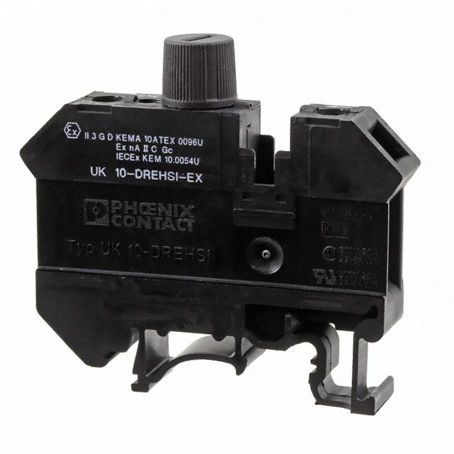 This is manufactured by Phoenix Contact. The manufacturer part number is 3073966. The product has a current rating of 10a. The product carries single levels. It is fused yes . Moreover, the product has a nominal 400 v voltage rating. The product uk 10-drehsi-ex (6.3x32), is a highly preferred choice for users. It has a decent black colour. It has a model number uk 10-drehsi-ex (6,3x32). It allows screw termination method. The cross section area of the cable includes 0.5 → 16mm². It is assigned with possible HTSUS value of 8536.69.8000. The product is rohs3 compliant. Moreover, it has screw terminal style. It is designed from highly reliable polyamide (pa), nylon insulating material. It comes in disconnect configuration. The product carries possible position value of 2. A 0.5-16mm² of wire gauge. In addition, it is reach affected. It carries ul94 v-2 of material flammability rating. It is shipped in bulk package . It has a stripping length of 11mm. Its typical moisture sensitivity level is 1 (unlimited). An IEC current of 10 a. While 6-20 awg is its range or wire gauge. It has a long 7 weeks standard lead time. The built-in terminal is 12.0mm wide. Disconnect type - fuse, screw cap. The nominal voltage of the product is 400v. It has a classic black colour. The product clipline uk, is a highly preferred choice for users. It integrates a 6.3mm x 32mm fuse type. The product carries 1 levels. The product is designated with the ear99 code number.