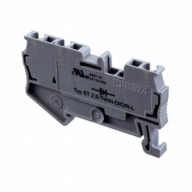 This is manufactured by Phoenix Contact. The manufacturer part number is 3036521. Features 28 → 12awg - American Wire Gauge. The product has a current rating of 500ma. Moreover, the product has a nominal 800 v voltage rating. The product st, is a highly preferred choice for users. It has a decent grey colour. It has a model number st 2,5-twin-dio/r-l. It allows spring clamp termination method. It is assigned with possible HTSUS value of 8536.69.8000. The product is rohs3 compliant. Moreover, it has push in, spring terminal style. It is designed from highly reliable polyamide (pa), nylon insulating material. It comes in feed through configuration. The product carries possible position value of 3. A 0.08-4mm² of wire gauge. In addition, it is reach affected. It carries ul94 v-0 of material flammability rating. The phoenix contact's product offers user-desired applications. It has a stripping length of 10mm. Its typical moisture sensitivity level is not applicable. An IEC current of 0.5 a. The product carries 1 levels. While 12-28 awg is its range or wire gauge. While 600v is the typical voltage of the product. It has a long 4 weeks standard lead time. The built-in terminal is 5.2mm wide. The nominal voltage of the product is 800v. The splendid features of the product include diode. It has a classic gray colour. The product clipline st, is a highly preferred choice for users. In addition, bulk is the available packaging type of the product. The typical current includes 20 a. The product is designated with the ear99 code number.