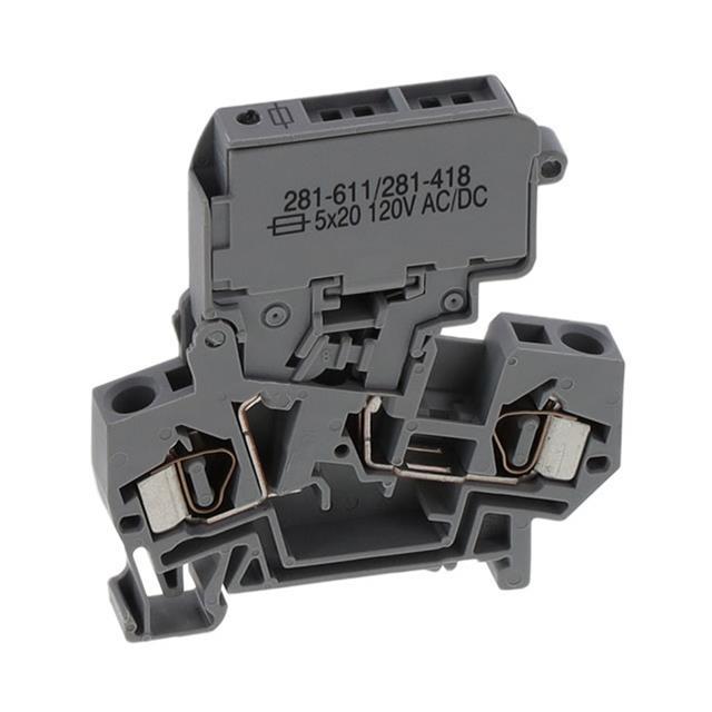 This is manufactured by WAGO Corporation. The manufacturer part number is 281-611/281-418. It is assigned with possible HTSUS value of 8536.90.4000. The product is rohs3 compliant. Moreover, it has push in, spring terminal style. It is designed from highly reliable polyamide (pa66), nylon 6/6 insulating material. It comes in disconnect configuration. The product carries possible position value of 2. A 0.08-4mm² of wire gauge. In addition, it is reach unaffected. The wago corporation's product offers user-desired applications. It has a stripping length of 9mm ~ 10mm. Its typical moisture sensitivity level is 1 (unlimited). An IEC current of 10 a. The product carries 1 levels. While 12-28 awg is its range or wire gauge. It has a long 8 weeks standard lead time. The built-in terminal is 8.0mm wide. Disconnect type - fuse. The nominal voltage of the product is 800v. The splendid features of the product include neon lamp. It has a classic gray colour. In addition, bulk is the available packaging type of the product. It integrates a 5mm x 20mm fuse type. Moreover, it corresponds to 281, a base product number of the product. The product is designated with the ear99 code number.
