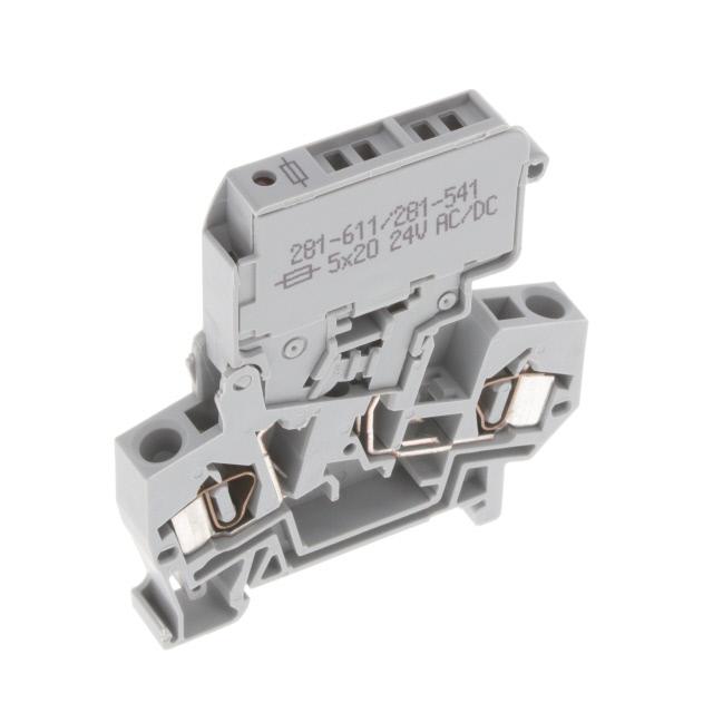 This is manufactured by WAGO Corporation. The manufacturer part number is 281-611/281-541. It is assigned with possible HTSUS value of 8536.90.4000. The product is rohs3 compliant. Moreover, it has push in, spring terminal style. It is designed from highly reliable polyamide (pa66), nylon 6/6 insulating material. It comes in disconnect configuration. The product carries possible position value of 2. A 0.08-4mm² of wire gauge. In addition, it is reach unaffected. The wago corporation's product offers user-desired applications. It has a stripping length of 9mm ~ 10mm. Its typical moisture sensitivity level is 1 (unlimited). An IEC current of 10 a. The product carries 1 levels. While 12-28 awg is its range or wire gauge. It has a long 8 weeks standard lead time. The built-in terminal is 8.0mm wide. Disconnect type - fuse. The nominal voltage of the product is 800v. The splendid features of the product include led indicator. It has a classic gray colour. In addition, bulk is the available packaging type of the product. It integrates a 5mm x 20mm fuse type. Moreover, it corresponds to 281, a base product number of the product. The product is designated with the ear99 code number.