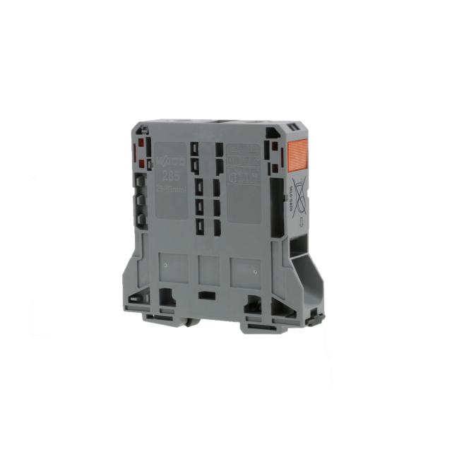 This is manufactured by WAGO Corporation. The manufacturer part number is 285-195. It is assigned with possible HTSUS value of 8536.90.4000. The product is rohs3 compliant. Moreover, it has push in, spring terminal style. It is designed from highly reliable polyamide (pa66), nylon 6/6 insulating material. It comes in feed through configuration. The product carries possible position value of 2. A 25-95mm² of wire gauge. In addition, it is reach unaffected. It is shipped in bulk package . It has a stripping length of 35mm. Its typical moisture sensitivity level is 1 (unlimited). An IEC current of 232 a. While 4/0-4 awg is its range or wire gauge. It has a long 8 weeks standard lead time. The built-in terminal is 25.0mm wide. The nominal voltage of the product is 1500v. It has a classic gray colour. The product carries 1 levels. Moreover, it corresponds to 285, a base product number of the product. The product is designated with the ear99 code number.