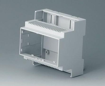 This is RAILTEC C DIN Rail Enclosure Polycarbonate 88 x 58 x 90mm Front Open Vented Sides manufactured by OKW Enclosures. The manufacturer part number is B6704102-AL. It has a/an top hat type DIN rail . The given dimensions of the product include 88 x 58 x 90mm. The product railtec c, is a highly preferred choice for users. It has a decent light grey colour. The product's body is nicely designed from polycarbonate materials. In addition, the height is 90mm. It has a maximum 2 terminals . Furthermore, the product is 58mm wide. Its accurate length is 88mm. Additionally, it has a pcb card guide type internal mounting . It has a front open, vented sides type enclosure . The product complies with all safety standards, such as din en 60715, reach compliant, rohs, ul 94v-0.