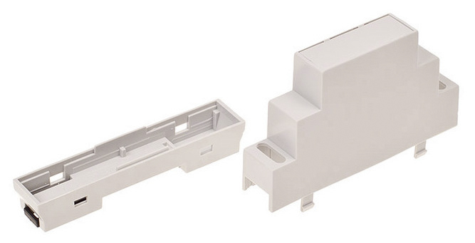 This is Enclosure 18 x 90 x 65mm manufactured by RS PRO. The manufacturer part number is 186-2292. The given dimensions of the product include 17.5 x 90.0 x 64.9mm. It has a decent light grey colour. The product's body is nicely designed from abs materials. In addition, the height is 65mm. Furthermore, the product is 90mm wide. Its accurate length is 17.5mm. It has a modular enclosure type enclosure .