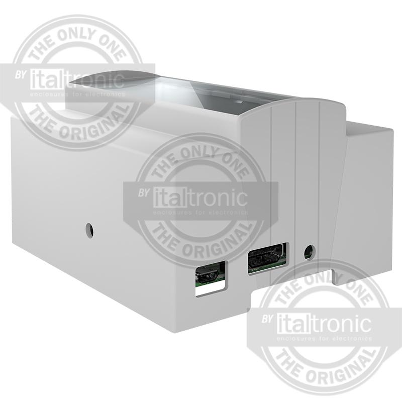 This is Solid Top Enclosure Type ABS Polycarbonate DIN Rail Enclosure Kit manufactured by Italtronic. The manufacturer part number is 25.0610000.OCP. The product is highly suitable for odroid c1+/c2. It has a decent grey colour. Features 106.3 x 90.5 x 62mm external caliber. The product's body is nicely designed from abs materials.