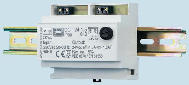 This is DCT Linear DIN Rail Panel Mount Power Supply 48W 12V dc/ 4A manufactured by Block. The manufacturer part number is DCT12-4. Additionally, the product is supplied with 1 outputs. It has 12.0 to 12.0v of output voltage adjustment range. Load Regulation - ±21%. It has a/an dc output voltage . The given dimensions of the product include 159 x 63 x 94mm. The product is available in din rail mount configuration. The product has +40°c maximum temperature. The product dct, is a highly preferred choice for users. Its electrical phase configuration includes 1. It has ac input voltage. In addition, the height is 94mm. Furthermore, the product is 63mm wide. The product comes in 94mm depth. Its input voltage is 230v ac. Features a 12v dc output voltage. Carries ±5% ripple and noise. It comes in linear configuration. It carries 4a output current.