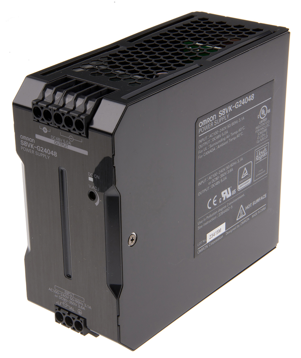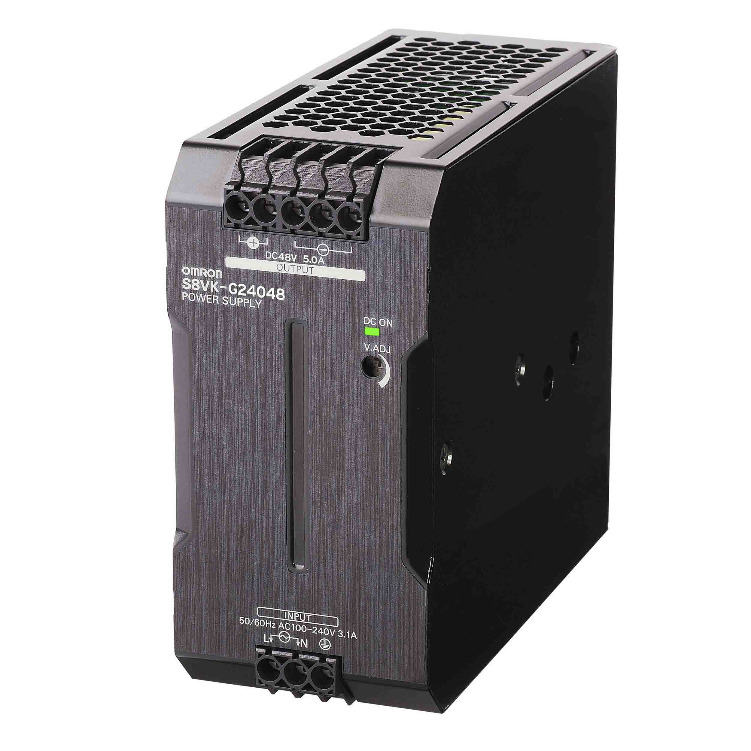 This is S8VK-G Switch Mode DIN Rail Panel Mount Power Supply 240W 48V dc/ 5A manufactured by Omron. The manufacturer part number is S8VK-G24048. Additionally, the product is supplied with 1 outputs. Carries 350mv ripple and noise. It carries 5a output current. The given dimensions of the product include 125 x 60 x 150mm. The product is available in din rail mount configuration. It is a highly efficient product with an 92% of high efficiency. The product has +70°c maximum temperature. The product s8vk-g, is a highly preferred choice for users. Its electrical phase configuration includes 1. It has ac, dc input voltage. In addition, the height is 125mm. Furthermore, the product is 60mm wide. The product comes in 150mm depth. The MTBF values include 360000h. Features a 48v dc output voltage. While its minimum temperature is -40°c. It has a/an dc output voltage . It comes in switched mode configuration. Its input voltage is 100 → 240 v ac / 90 → 350v dc.