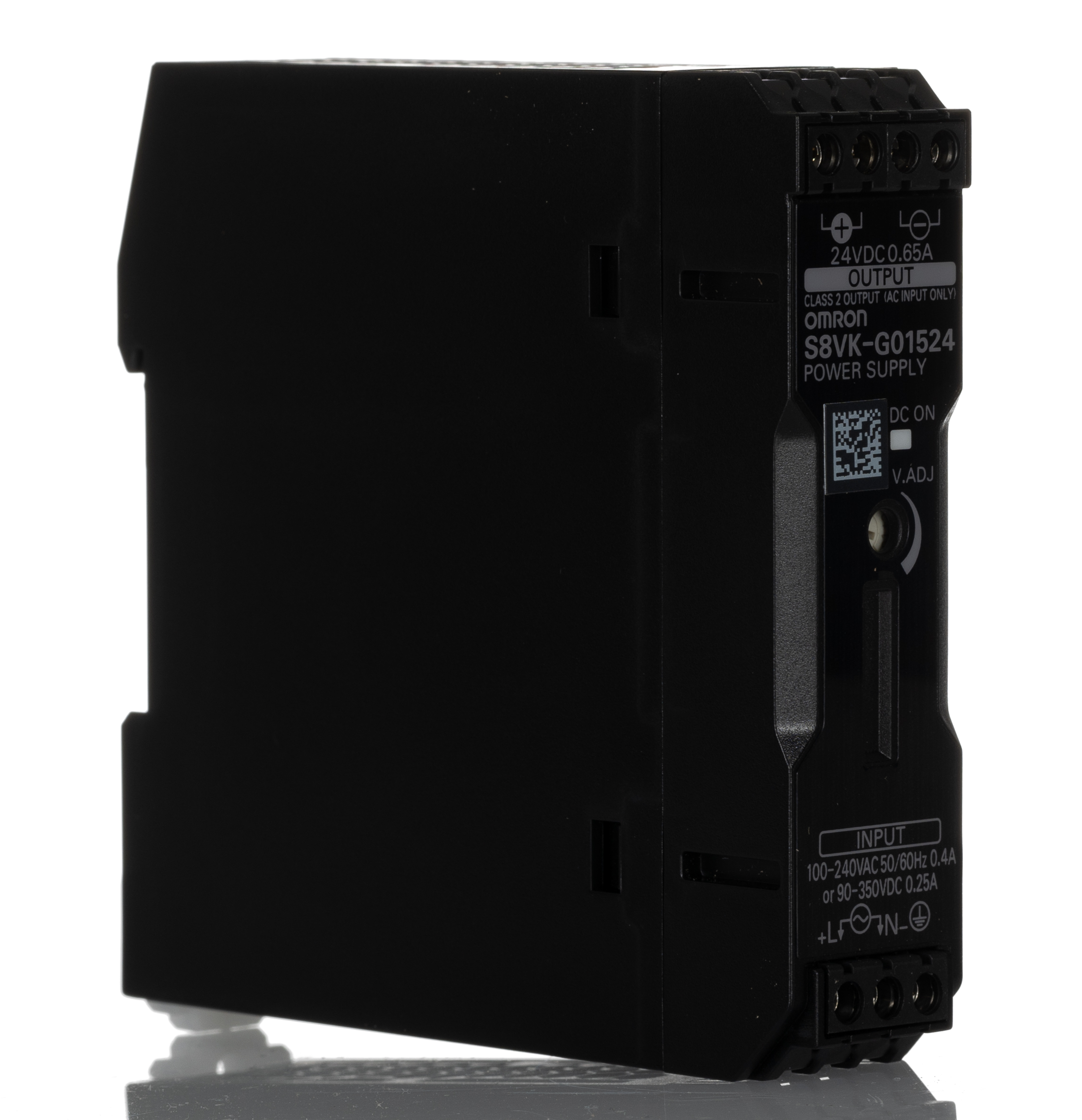 This is 15W Switch Mode DIN Rail Panel Mount Power Supply 24V dc/ 650mA manufactured by Omron. The manufacturer part number is S8VK-G01524. The product has +70°c maximum temperature. It has a/an dc output voltage . The given dimensions of the product include 90 x 22.5 x 90mm. While its minimum temperature is -40°c. It has ac, dc input voltage. Furthermore, the product is 22.5mm wide. The MTBF values include 600000h. Its electrical phase configuration includes 1. It comes in switched mode configuration. The product complies with all safety standards, such as ce certified, culus. It is a highly efficient product with an 81 %, 83 % of high efficiency. Its input voltage is 100 → 240 v ac / 90 → 350v dc. Additionally, the product is supplied with 1 outputs. It has -10 → +15% of output voltage adjustment range. Carries 30mv ripple and noise. The product comes in 90mm depth. The product is available in din rail mount configuration. It carries 650ma output current. The product s8vk-g, is a highly preferred choice for users. In addition, the height is 90mm. Features a 24v dc output voltage.