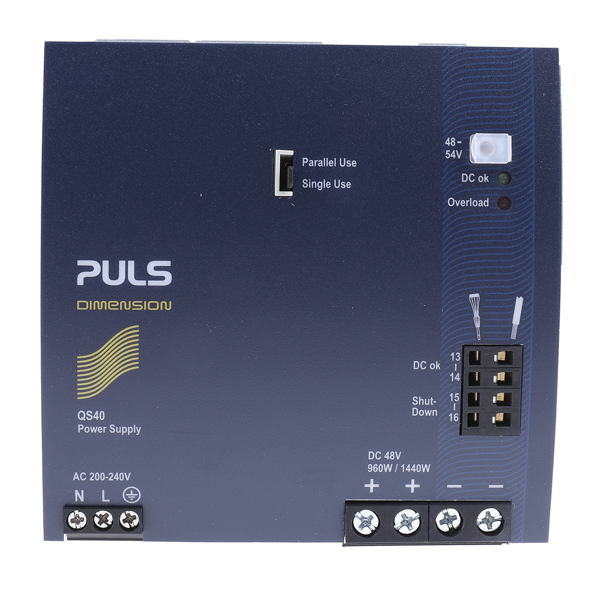 This is DIMENSION Q Switch Mode DIN Rail Panel Mount Power Supply 960W 175 → 264V ac/ 20A manufactured by PULS. The manufacturer part number is QS40.484. Additionally, the product is supplied with 1 outputs. Load Regulation - 50mv. It carries 20a output current. The given dimensions of the product include 125 x 124 x 127mm. The product is available in din rail mount configuration. The product has +70°c maximum temperature. The product dimension q, is a highly preferred choice for users. Its electrical phase configuration includes 1. It has ac input voltage. In addition, the height is 124mm. Furthermore, the product is 125mm wide. The product comes in 127mm depth. The MTBF values include 693000h. Features a 48v dc output voltage. While its minimum temperature is -25°c. It has a/an dc output voltage . Carries 150mv pk-pk ripple and noise. It comes in switched mode configuration. Its input voltage is 200 → 240v ac.