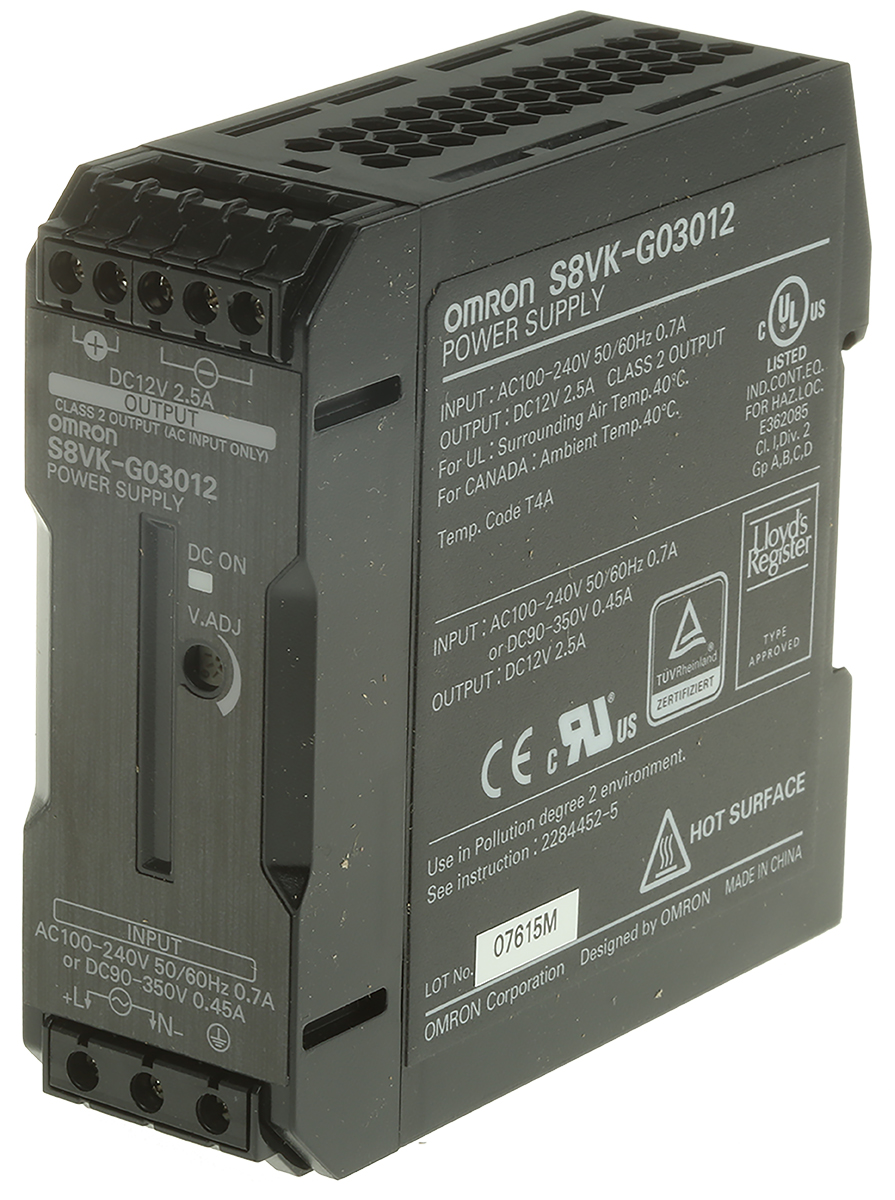 This is 30W Switch Mode DIN Rail Panel Mount Power Supply 12V dc/ 2.5A manufactured by Omron. The manufacturer part number is S8VK-G03012. The product has +70°c maximum temperature. It has a/an dc output voltage . The given dimensions of the product include 90 x 32 x 90mm. While its minimum temperature is -40°c. Furthermore, the product is 32mm wide. The MTBF values include 580000h. Its electrical phase configuration includes 1. It comes in switched mode configuration. Additionally, the DC Input Voltage of the product is 350v dc It is a highly efficient product with an 82% of high efficiency. Its input voltage is 100 → 240 v ac / 90 → 350v dc. Additionally, the product is supplied with 1 outputs. It has -10 → 15% of output voltage adjustment range. Carries 30mv ripple and noise. The product comes in 90mm depth. It has ac, dc input voltage. The product complies with all safety standards, such as ce. The product is available in din rail mount configuration. It carries 2.5a output current. The product s8vk-g, is a highly preferred choice for users. In addition, the height is 90mm. Features a 12v dc output voltage.