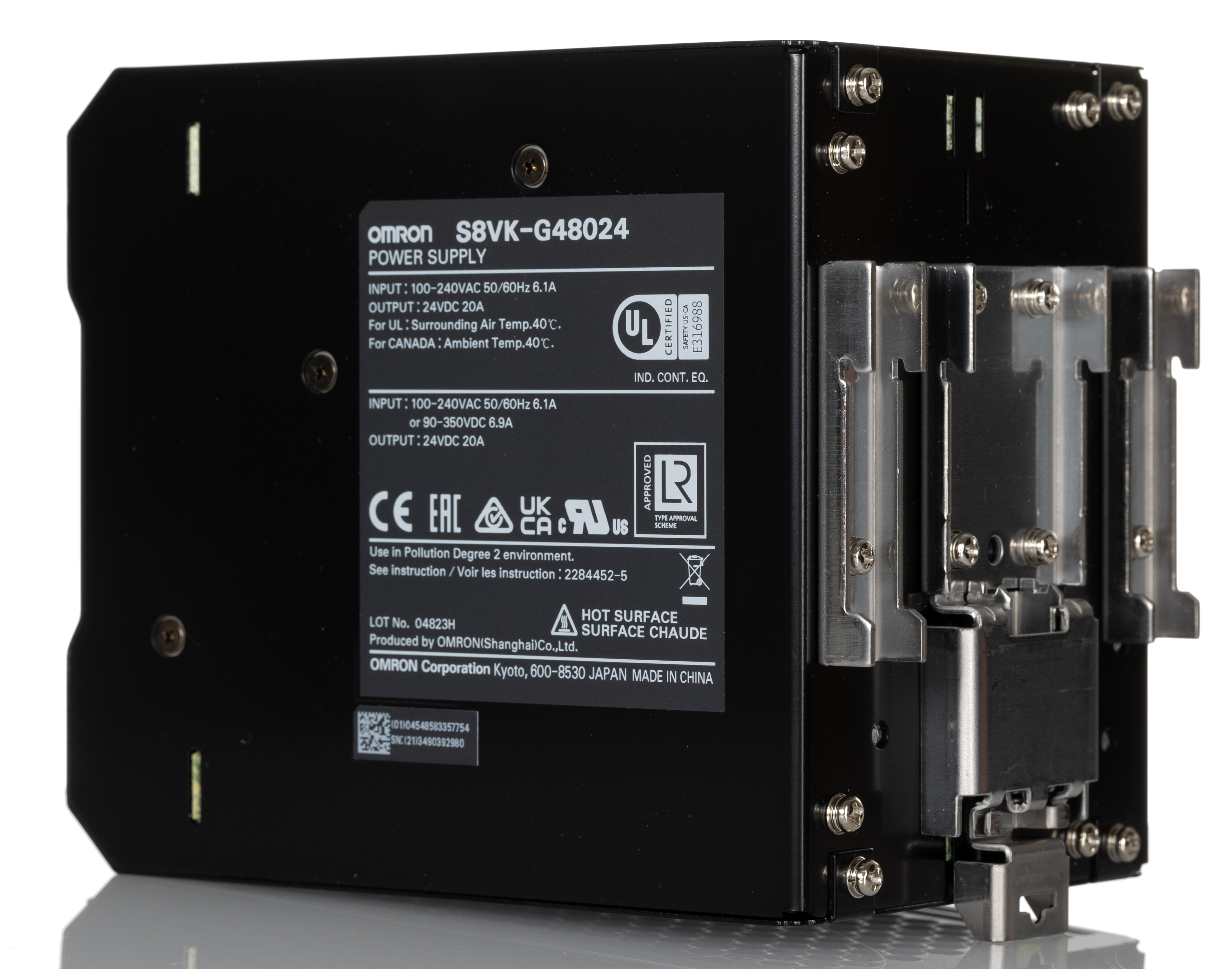 This is S8VK-G Switch Mode DIN Rail Panel Mount Power Supply 480W 24V dc/ 20A manufactured by Omron. The manufacturer part number is S8VK-G48024. The product has +70°c maximum temperature. It has a/an dc output voltage . The given dimensions of the product include 125 x 95 x 150mm. While its minimum temperature is -40°c. It has ac, dc input voltage. Furthermore, the product is 95mm wide. The MTBF values include 230000h. Its electrical phase configuration includes 1. It comes in switched mode configuration. The product complies with all safety standards, such as ce certified, culus. It is a highly efficient product with an 93% of high efficiency. Its input voltage is 100 → 240 v ac / 90 → 350v dc. Additionally, the product is supplied with 1 outputs. It has -10 → +15% of output voltage adjustment range. Carries 230mv ripple and noise. The product comes in 150mm depth. The product is available in din rail mount configuration. It carries 20a output current. The product s8vk-g, is a highly preferred choice for users. In addition, the height is 125mm. Features a 24v dc output voltage.