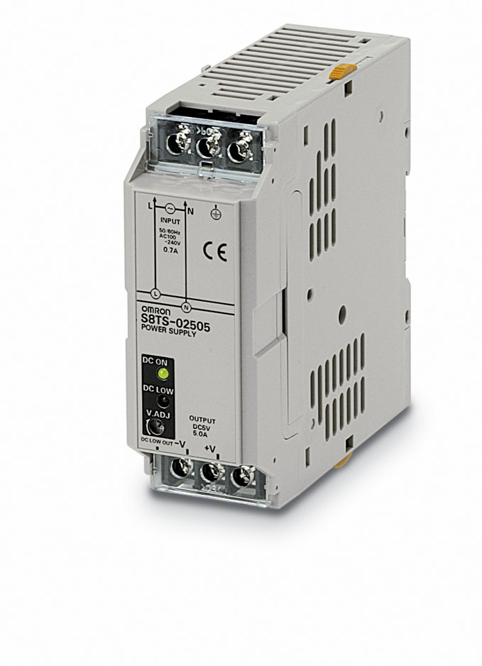 This is 25W Switch Mode DIN Rail Panel Mount Power Supply 5V dc/ 5A manufactured by Omron. The manufacturer part number is S8TS-02505. Additionally, the product is supplied with 1 outputs. Load Regulation - ±2%. It carries 5a output current. The given dimensions of the product include 120 x 48 x 128.1mm. The product is available in din rail mount configuration. It is a highly efficient product with an 73% of high efficiency. The product has +40°c maximum temperature. The product s8ts, is a highly preferred choice for users. Its electrical phase configuration includes 1. It has ac input voltage. In addition, the height is 120mm. Furthermore, the product is 48mm wide. The product comes in 120mm depth. The MTBF values include 250000h. Features a 5v dc output voltage. While its minimum temperature is 0°c. It has a/an dc output voltage . Feature 25w of power rating. Carries ±2% ripple and noise. It comes in switched mode configuration. Its input voltage is 85 → 264v ac.