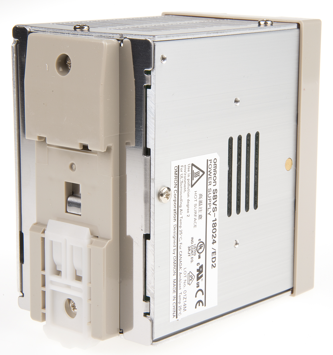 This is 180W Switch Mode DIN Rail Panel Mount Power Supply 24V dc/ 7.5A manufactured by Omron. The manufacturer part number is S8VS-18024. Additionally, the product is supplied with 1 outputs. Load Regulation - ±1.5%. It carries 7.5a output current. The given dimensions of the product include 125.3 x 75 x 119.5mm. The product is available in din rail mount configuration. It is a highly efficient product with an 80% of high efficiency. The product has +60°c maximum temperature. The product s8vs, is a highly preferred choice for users. Its electrical phase configuration includes 1. It has ac input voltage. In addition, the height is 115mm. Furthermore, the product is 75mm wide. The product comes in 125.3mm depth. The MTBF values include 135000h. Features a 24v dc output voltage. While its minimum temperature is -10°c. It has a/an dc output voltage . Feature 180w of power rating. Carries ±2% ripple and noise. It comes in switched mode configuration. Its input voltage is 85 → 264v ac.