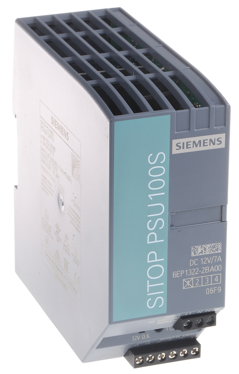 This is Stabilised DIN Rail Panel Mount Power Supply 84W 12V dc/ 7A manufactured by Siemens. The manufacturer part number is 6EP1322-2BA00. The product has +70°c maximum temperature. It has a/an dc output voltage . The given dimensions of the product include 125 x 50 x 120mm. While its minimum temperature is -25°c. It has ac input voltage. Furthermore, the product is 50mm wide. The MTBF values include 1998441h. Its electrical phase configuration includes 1. It comes in switched mode configuration. Load Regulation - 1%. Its input voltage is 85 → 132v ac. Additionally, the product is supplied with 1 outputs. It has 115 → 15.5v of output voltage adjustment range. Carries 150mv pk-pk ripple and noise. The product comes in 120mm depth. The product is available in din rail mount configuration. It carries 7a output current. The product sitop psu100s, is a highly preferred choice for users. In addition, the height is 125mm. Features a 12v dc output voltage.
