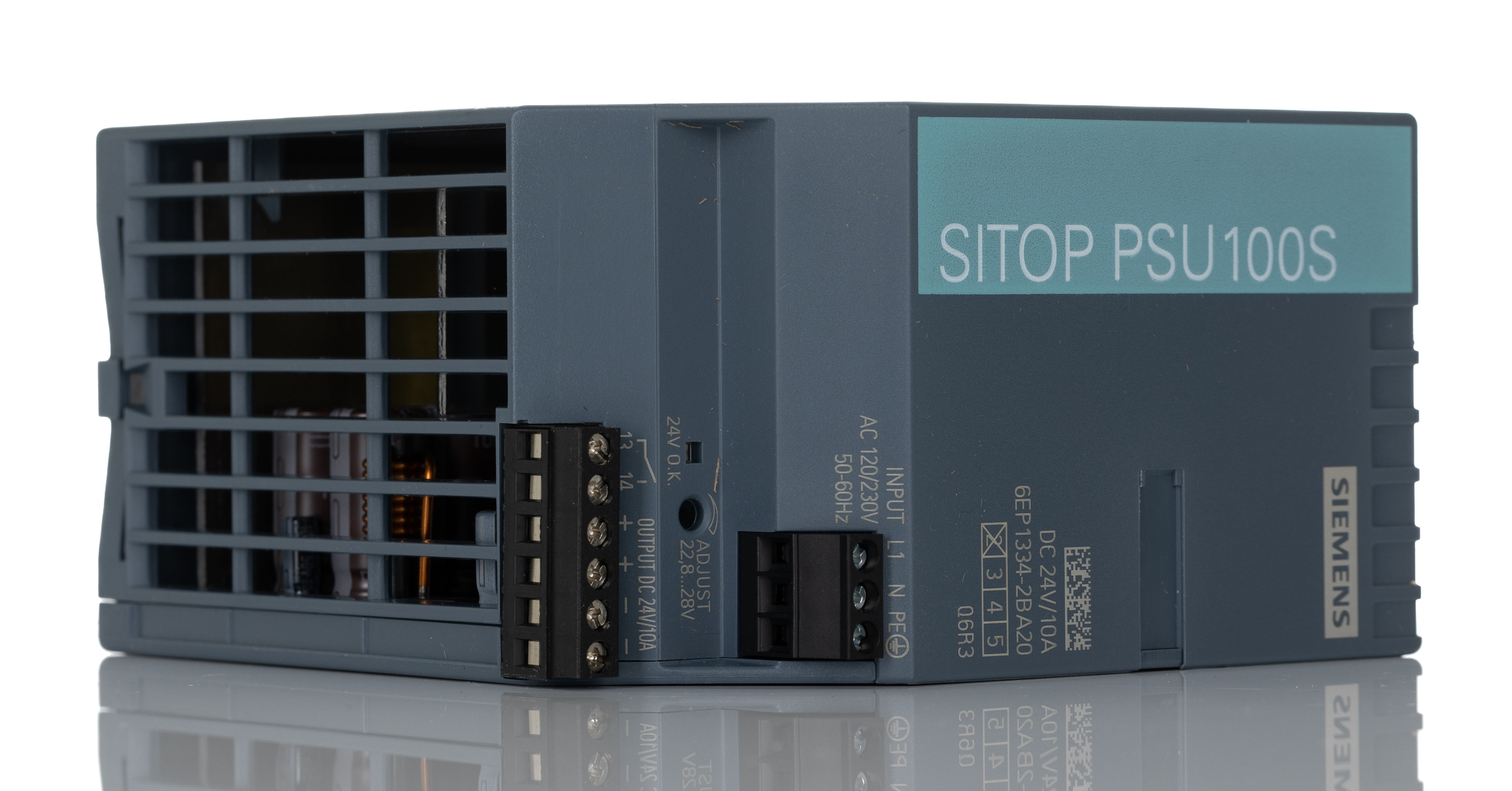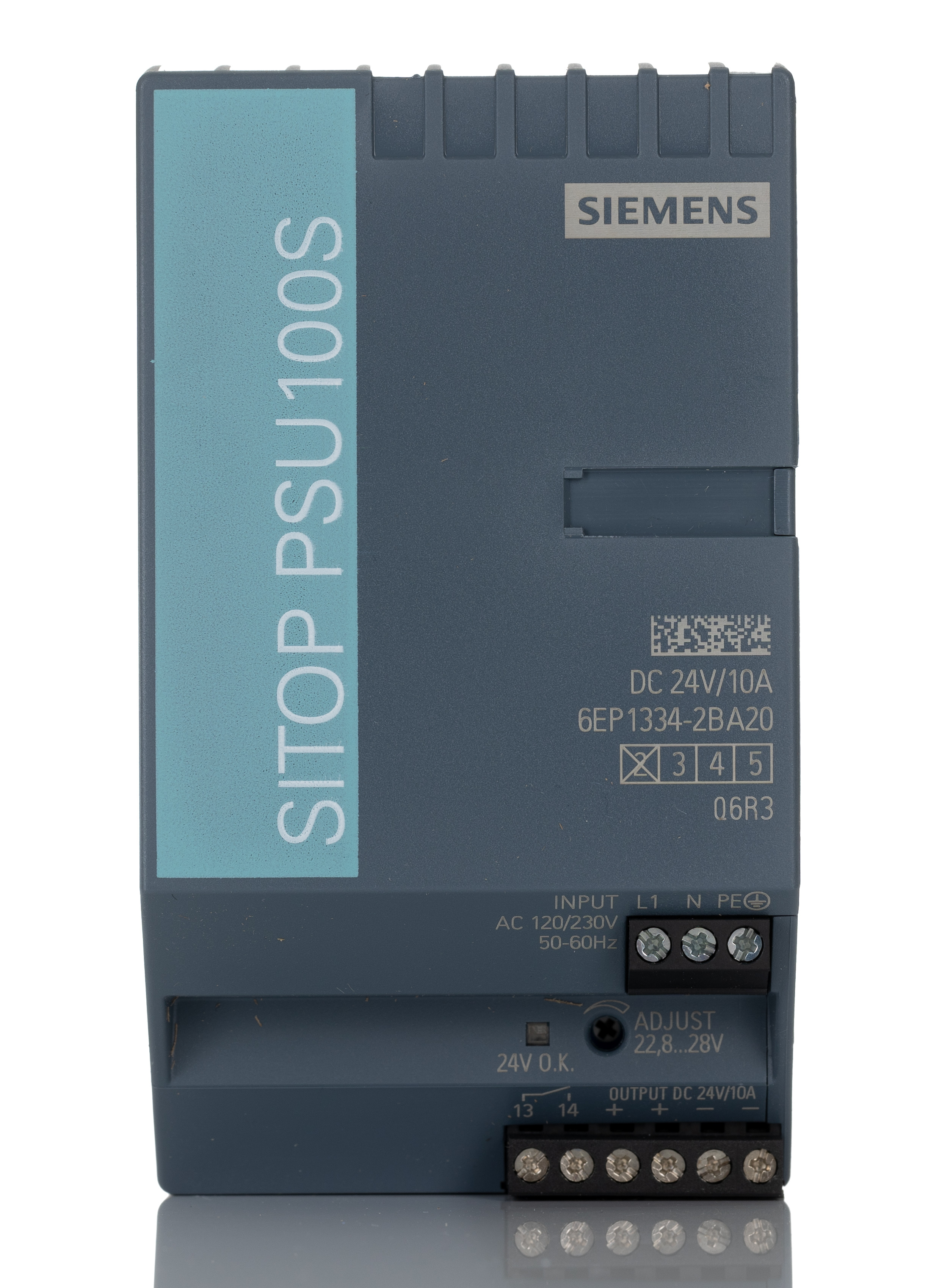 This is Stabilised DIN Rail Panel Mount Power Supply 288W 24V dc/ 10A manufactured by Siemens. The manufacturer part number is 6EP1334-2BA20. The product has +70°c maximum temperature. It has a/an dc output voltage . The given dimensions of the product include 125 x 70 x 120mm. While its minimum temperature is -25°c. It has ac input voltage. Furthermore, the product is 70mm wide. The MTBF values include 1614510h. Its electrical phase configuration includes 1. It comes in switched mode configuration. Load Regulation - 1%. The product complies with all safety standards, such as ccsaus (csa c22.2 no. 60950-1, ul 60950-1), ce certified, culus-listed (ul 508, csa c22.2 no. 107.1), file e197259, en 55022 class b, en 61000-3-2, en 61000-6-2. It is a highly efficient product with an 90% of high efficiency. Its input voltage is 170 → 264v ac. Additionally, the product is supplied with 1 outputs. It has 22.8 → 28v of output voltage adjustment range. Carries 150mv pk-pk ripple and noise. The product comes in 120mm depth. The product is available in din rail mount configuration. It carries 10a output current. The product sitop psu100s, is a highly preferred choice for users. In addition, the height is 125mm. Features a 24v dc output voltage.