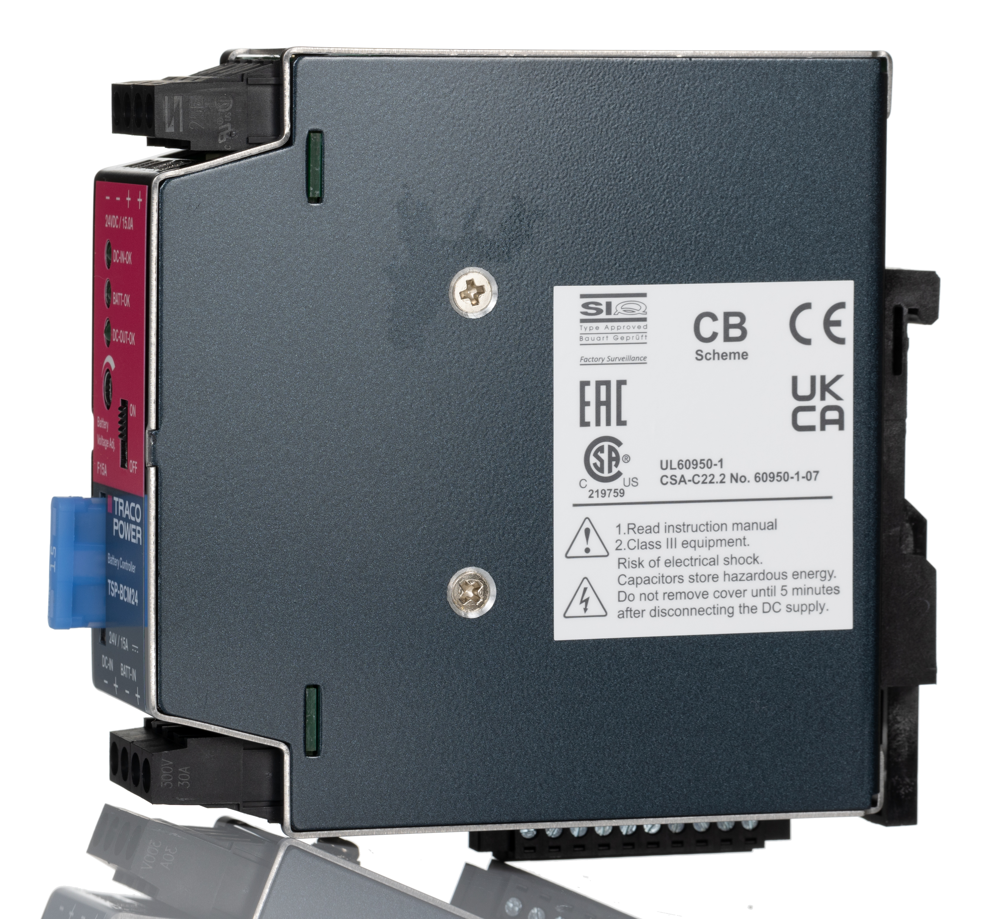 This is 360W Analogue UPS Control Unit 24V dc/ 15A manufactured by TRACOPOWER. The manufacturer part number is TSP-BCM24. The product is available in din rail mount configuration. Furthermore, the product is 35mm wide. The product comes in 110mm depth. Its input voltage is 24 → 28v dc. Features a 24v dc output voltage. Feature 360w of power rating. It comes in battery module configuration.