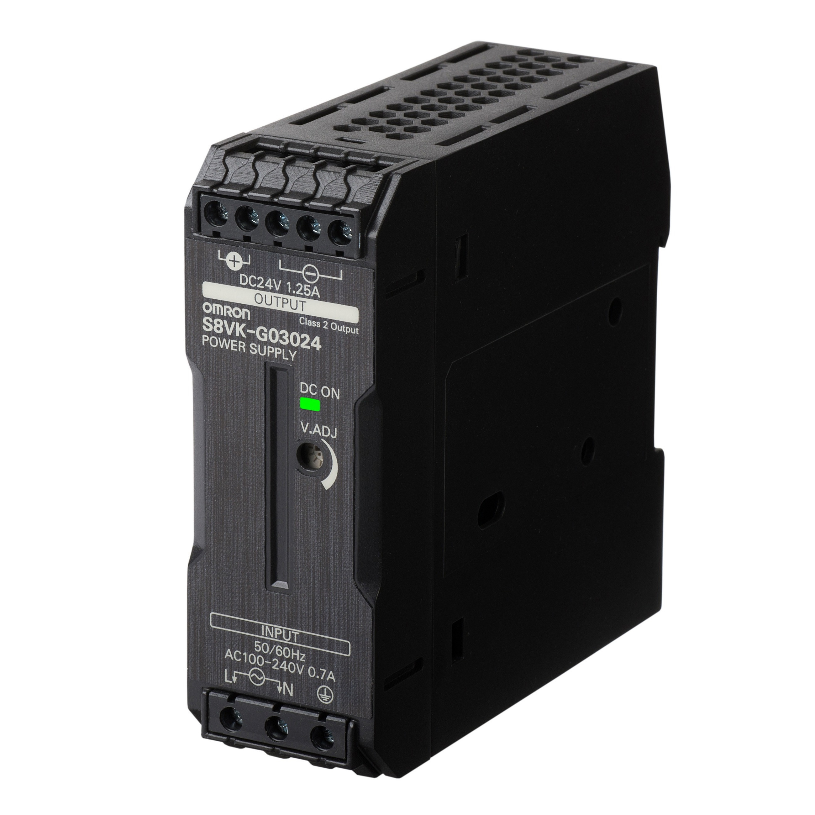 This is 30W Switch Mode DIN Rail Panel Mount Power Supply 24V dc/ 1.3A manufactured by Omron. The manufacturer part number is S8VK-G03024. The product has +70°c maximum temperature. It has a/an dc output voltage . The given dimensions of the product include 90 x 32 x 90mm. While its minimum temperature is -40°c. It has ac, dc input voltage. Furthermore, the product is 32mm wide. The MTBF values include 580000h. Its electrical phase configuration includes 1. It comes in switched mode configuration. Load Regulation - 0.8%. The product complies with all safety standards, such as ce, csa certified, ul. It is a highly efficient product with an 86% of high efficiency. Its input voltage is 100 → 240 v ac / 90 → 350v dc. Additionally, the product is supplied with 1 outputs. It has -10 → +15% of output voltage adjustment range. Carries 30mv ripple and noise. The product comes in 90mm depth. The product also provides special features, such as overvoltage and short circuit protection. The product is available in din rail mount configuration. It carries 1.3a output current. The product s8vk-g, is a highly preferred choice for users. In addition, the height is 90mm. Features a 24v dc output voltage.