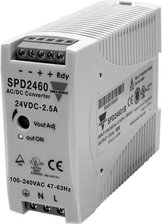 This is Switch Mode DIN Rail Power Supply 60W 48V dc/ 1.25A manufactured by Carlo Gavazzi. The manufacturer part number is SPD48601B. Additionally, the product is supplied with 1 outputs. Load Regulation - ±0.5%. It carries 1.25 a output current. The product has +71°c maximum temperature. Carries 50mv pk-pk ripple and noise. Its electrical phase configuration includes 1. Furthermore, the product is 90mm wide. The product comes in 114mm depth. The MTBF values include 531000h. Features a 48 v dc output voltage. While its minimum temperature is -40°c. Feature 60w of power rating. It comes in switch mode configuration.