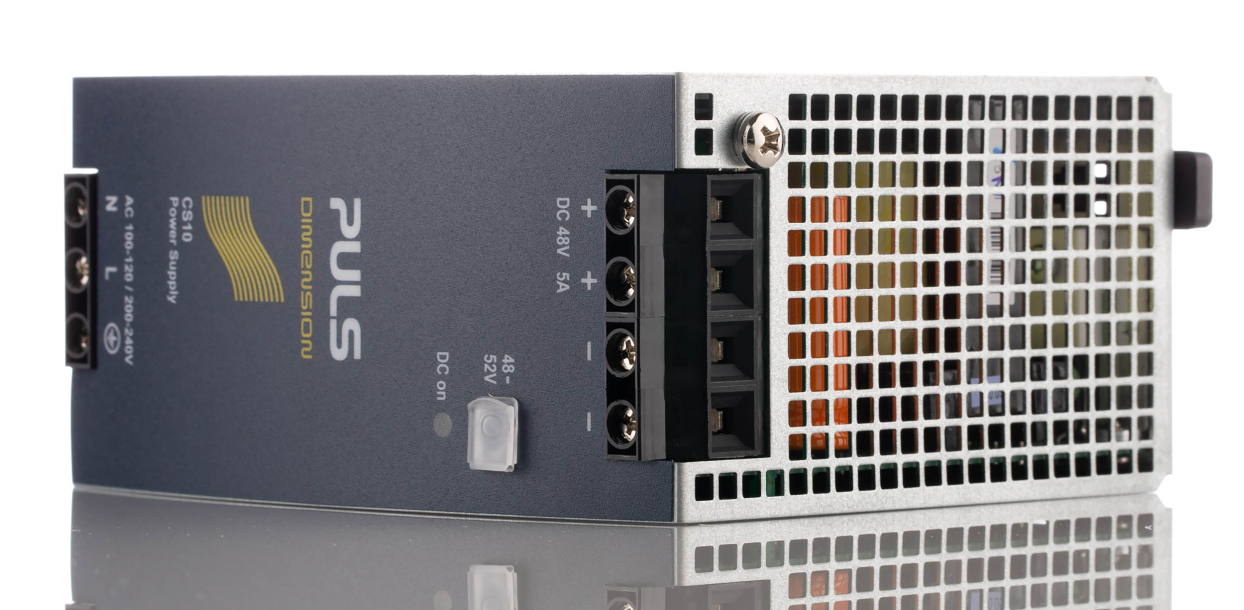 This is DIMENSION C-Line Switch Mode DIN Rail Panel Mount Power Supply 240W 180 → 264 V ac 90 → 132 V ac/ 5A manufactured by PULS. The manufacturer part number is CS10.481. Additionally, the product is supplied with 1 outputs. Load Regulation - 100mv. It carries 5a output current. The given dimensions of the product include 60 x 124 x 117mm. The product is available in din rail mount configuration. The product has +70°c maximum temperature. The product dimension c-line, is a highly preferred choice for users. Its electrical phase configuration includes 1. It has ac input voltage. In addition, the height is 124mm. Furthermore, the product is 60mm wide. The product comes in 117mm depth. The MTBF values include 1403000h. Features a 48v dc output voltage. While its minimum temperature is -25°c. It has a/an dc output voltage . Carries 100mv pk-pk ripple and noise. It comes in switched mode configuration. Its input voltage is 100→120v ac.