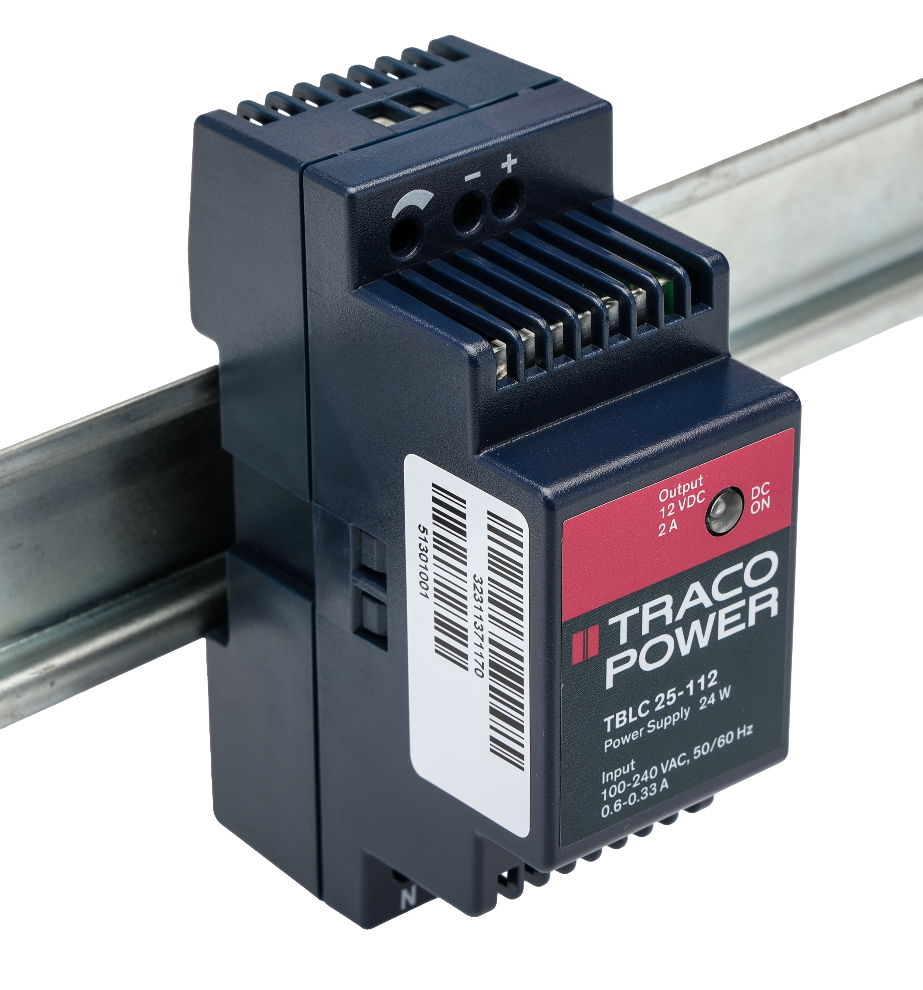 This is TBLC DIN Rail Power Supply 24W 2A manufactured by TRACOPOWER. The manufacturer part number is TBLC 25-112. The product has +70°c maximum temperature. It has a/an dc output voltage . The given dimensions of the product include 89.5 x 18 x 59.5mm. While its minimum temperature is -25°c. It has ac input voltage. Furthermore, the product is 36mm wide. The MTBF values include 1900000h. Its electrical phase configuration includes 1. It comes in switched mode configuration. Load Regulation - 0.3%. The product complies with all safety standards, such as erp compliant. It is a highly efficient product with an 86% of high efficiency. Its input voltage is 85 → 264v ac. Additionally, the product is supplied with 1 outputs. It has 12 → 16v of output voltage adjustment range. Carries 50mv pk-pk ripple and noise. The product comes in 89.5mm depth. The product also provides special features, such as adjustable output voltage, compliant to new standby power & efficiency requirements, low output ripples & spikes. The product is available in din rail mount configuration. It carries 2a output current. The product tblc 25, is a highly preferred choice for users. In addition, the height is 59.5mm. Features a 12v dc output voltage.