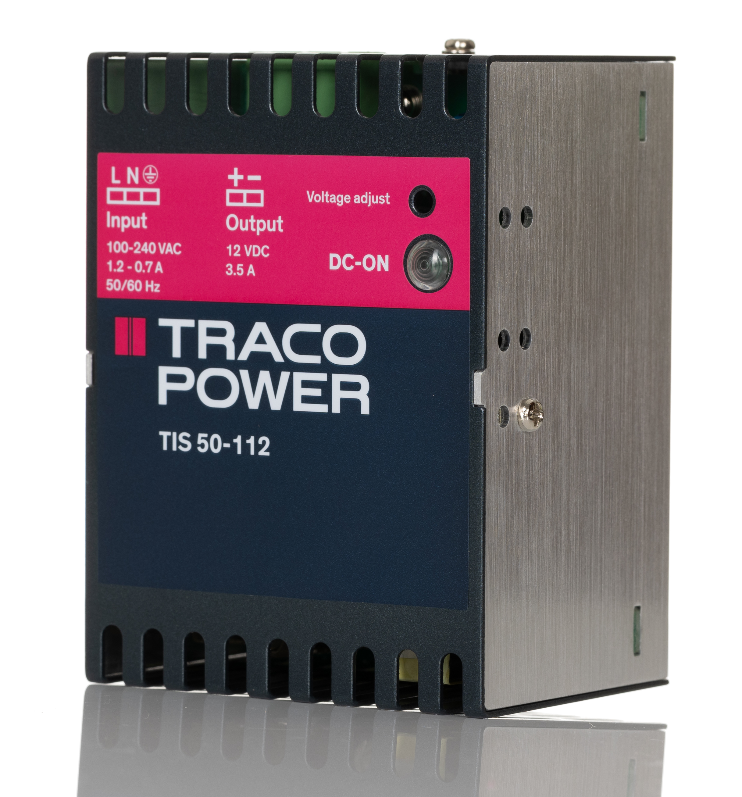 This is TIS DIN Rail Panel Mount Power Supply Switch Mode 50W 12V dc/ 3.5A manufactured by TRACOPOWER. The manufacturer part number is TIS 50-112. The product has +70°c maximum temperature. It has a/an dc output voltage . The given dimensions of the product include 75 x 56.7 x 100mm. While its minimum temperature is -25°c. It has ac input voltage. Furthermore, the product is 56.7mm wide. The MTBF values include 450000h. Its electrical phase configuration includes 1. It comes in switched mode configuration. Load Regulation - ±1%. The product complies with all safety standards, such as ul 60950-1. It is a highly efficient product with an 85% of high efficiency. Its input voltage is 93 → 264v ac. Additionally, the product is supplied with 1 outputs. Carries 50mv pk-pk ripple and noise. The product comes in 75mm depth. The product is available in din rail mount configuration. It carries 3.5a output current. The product tis, is a highly preferred choice for users. In addition, the height is 100mm. Features a 12v dc output voltage. Feature 50w of power rating.
