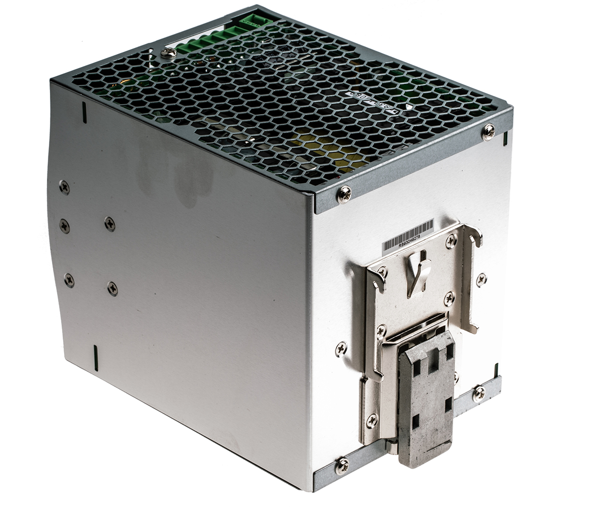 The SDR-960-48 is designed for easy DIN rail mounting, a standard method for securely installing electrical components in control panels and enclosures. This mounting system simplifies installation and maintenance, allowing for efficient use of space in industrial settings.