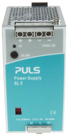 This is Switch Mode DIN Rail Panel Mount Power Supply 120W 24 → 28V dc/ 4.3 → 5A manufactured by PULS. The manufacturer part number is SL5.102. Additionally, the product is supplied with 1 outputs. Carries 25mv pk-pk ripple and noise. It has a/an dc output voltage . It carries 5a output current. The product is available in din rail mount configuration. The product has +70°c maximum temperature. While its minimum temperature is -10°c. Its electrical phase configuration includes 1. It has ac input voltage. In addition, the height is 124mm. Furthermore, the product is 64mm wide. The product comes in 124mm depth. The MTBF values include 520000h. Features a 24v dc output voltage. Feature 120w of power rating. It comes in switch mode configuration. Its input voltage is 100 → 120v ac.