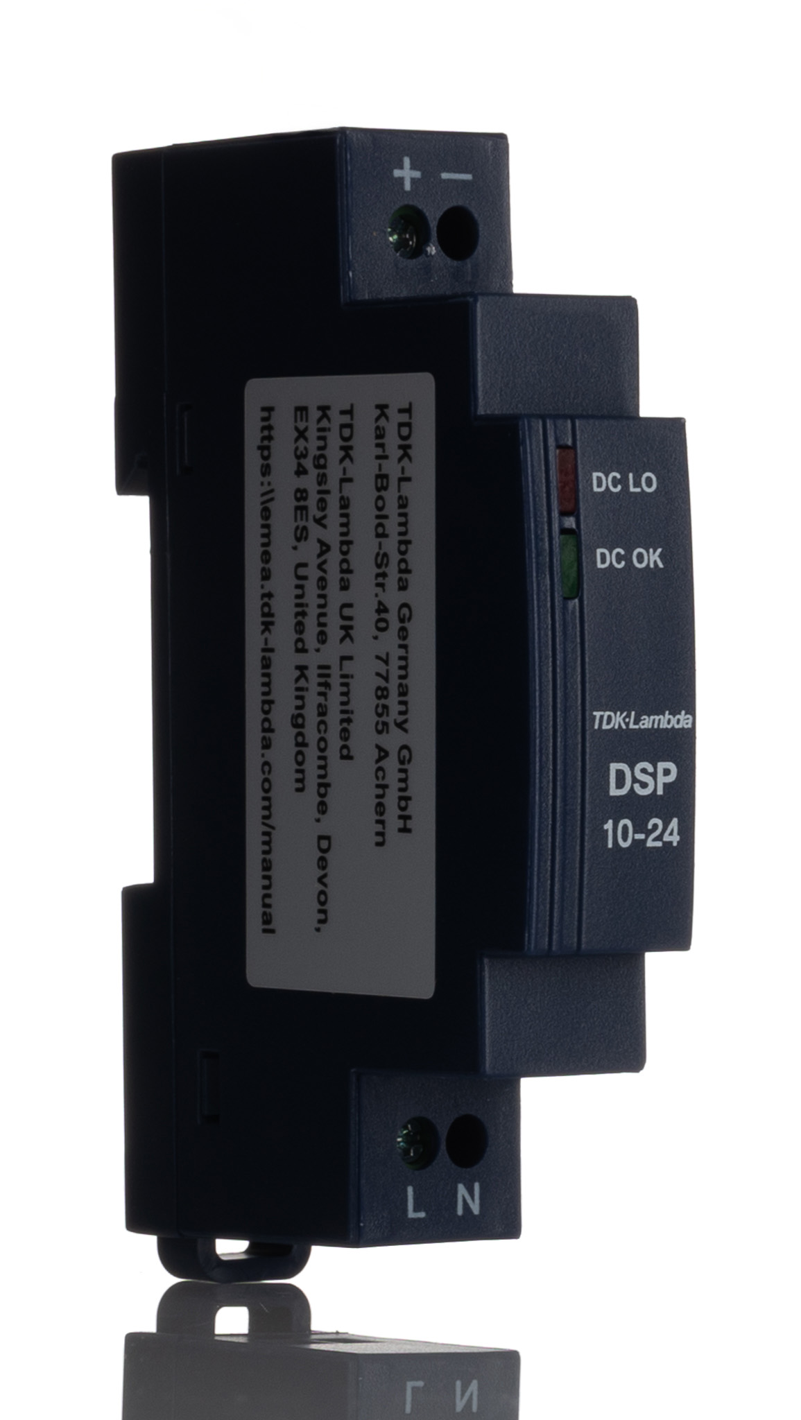 This is DSP DIN Rail Power Supply 10.1W Maximum of 24V dc/ 420mA manufactured by TDK-Lambda. The manufacturer part number is DSP-10-24. Additionally, the product is supplied with 1 outputs. Load Regulation - 1%. It has a/an dc output voltage . The given dimensions of the product include 18 x 55.6 x 91mm. The product is available in din rail mount configuration. The product has +71°c maximum temperature. The product dsp, is a highly preferred choice for users. Its electrical phase configuration includes 1. It has ac, dc input voltage. In addition, the height is 91mm. Furthermore, the product is 18mm wide. The product comes in 55.6mm depth. Its input voltage is 90 → 264 v ac / 120 →370v dc. Features a 24v dc output voltage. While its minimum temperature is -25°c. Carries 50mv ripple and noise. It comes in switched mode configuration. It carries 420ma output current. The product complies with all safety standards, such as ce, en 55022, en 60950-1, en 61000-3-2, en 61000-3-3, en 61000-4-11, en 61000-4-2, en 61000-4-3, en 61000-4-4, en 61000-4-5, en 61000-4-6, en 61000-4-8, iec 60068-2-27, iec 60068-2-6, ul 1310 class 2, ul 508, ul 60950-1, ul 94 v-0.