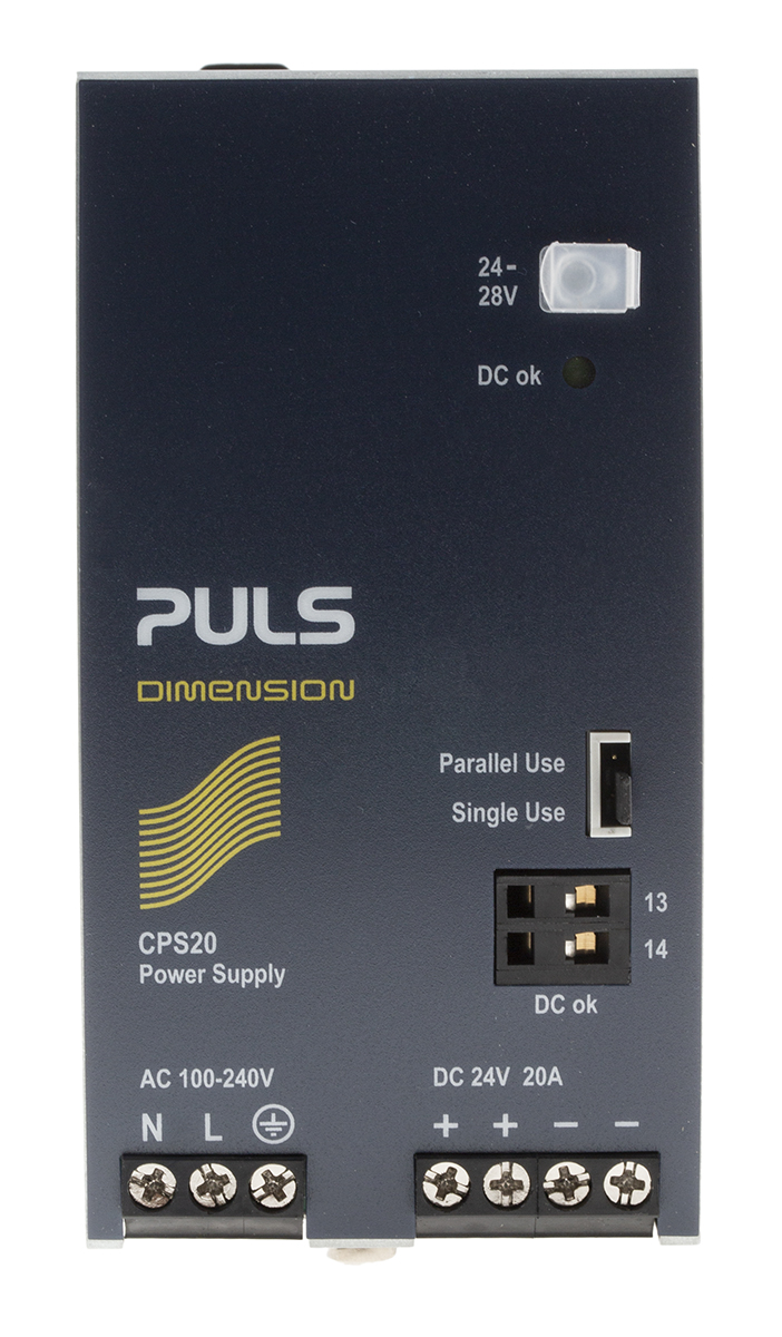 The PULS CPS20.241 is a cutting-edge DIN rail panel mount power supply that redefines power efficiency and reliability. With a power output of 480W and an output voltage of 24V DC at 20A, this powerhouse is engineered for excellence. Let's dive into its features, benefits, and applications. It operates with an impressive efficiency rating of up to 95.6%, which means minimal energy wastage. This not only lessens operational costs but also contributes to a greener environment.