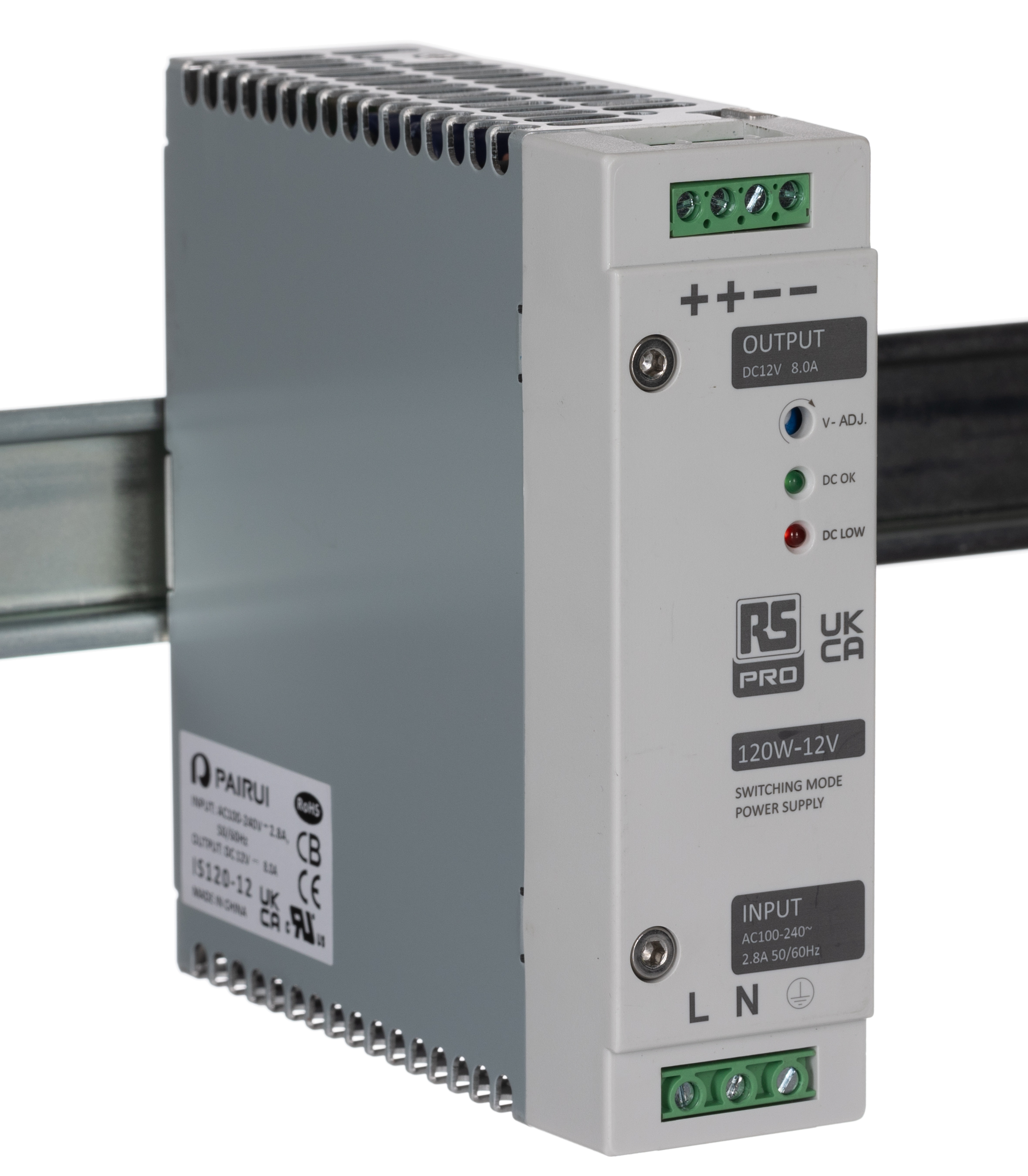 This is AC-DC Switching Power Supply DIN Rail Power Supply 120W 12V dc/ 8A manufactured by RS Pro. The manufacturer part number is 136-8317. Additionally, the product is supplied with 1 outputs. It has 11 → 14v of output voltage adjustment range. Load Regulation - 3%. It carries 8a output current. The given dimensions of the product include 40 x 130 x 125mm. The product is available in din rail mount configuration. The product has +70°c maximum temperature. While its minimum temperature is -25°c. Its electrical phase configuration includes 1. The product also provides special features, such as 100% full load burn-in test, 3-years warranty, compact size, cooling by free air convection, led indicator for dc low, led indicator for dc power on. In addition, the height is 130mm. Furthermore, the product is 40mm wide. The product comes in 125mm depth. The MTBF values include 200kh. Features a 12v dc output voltage. It has a/an dc output voltage . Carries 100mv ripple and noise. It comes in switched mode configuration. Its input voltage is 230v ac. The product complies with all safety standards, such as cb, ce, cul, culus recognised, fcc, ul.
