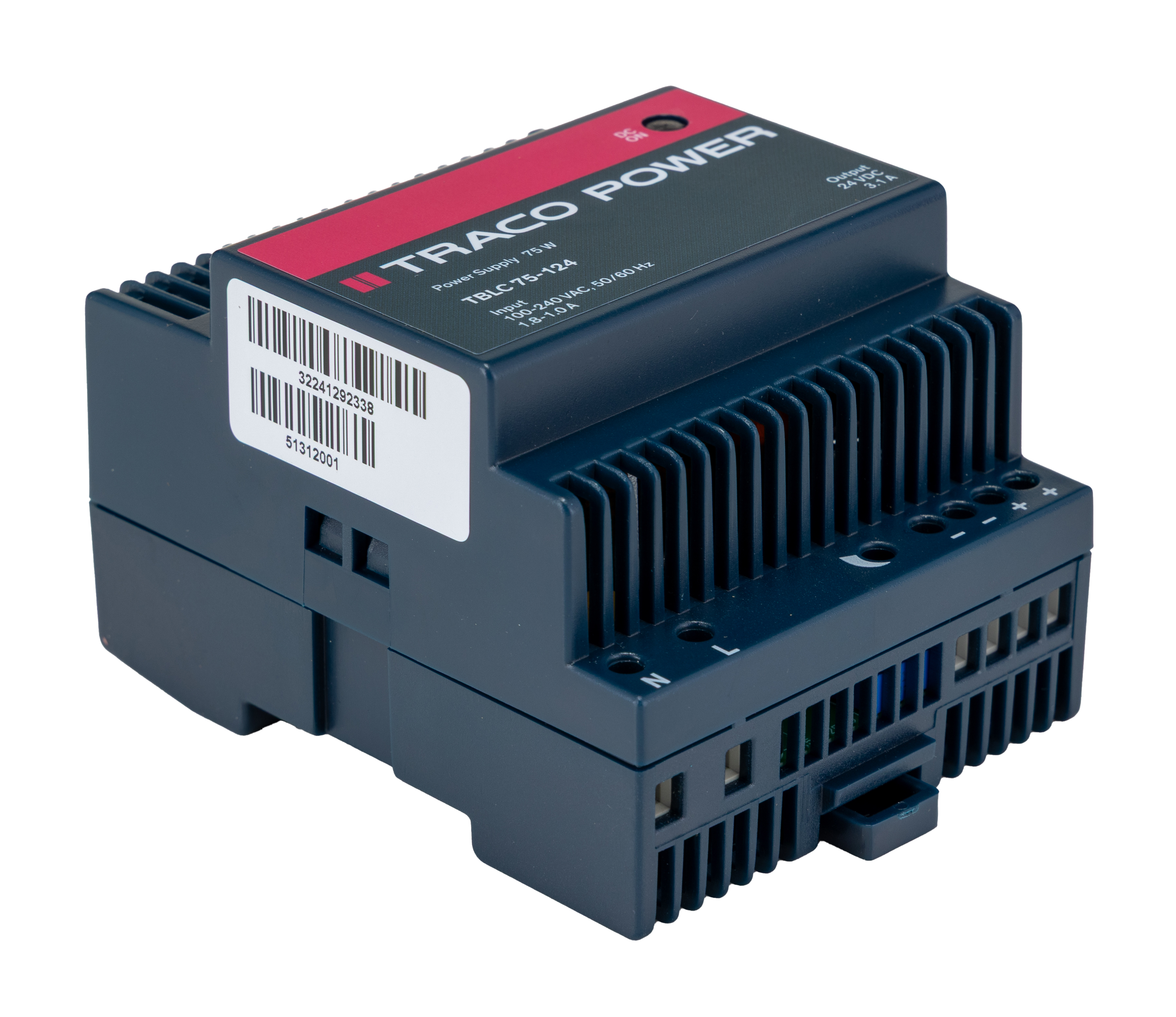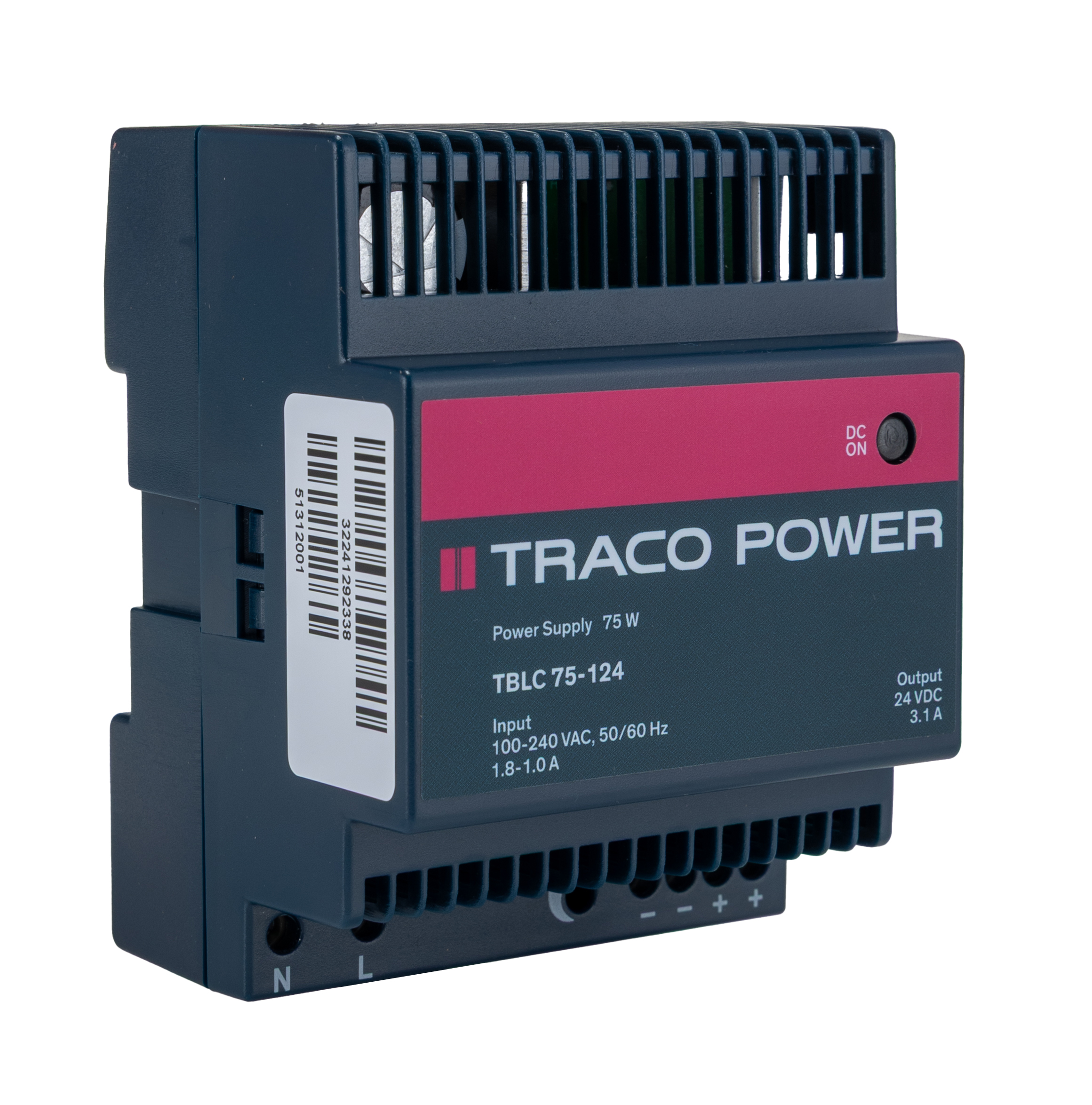 This is TBLC DIN Rail Power Supply 75W 3.1A manufactured by TRACOPOWER. The manufacturer part number is TBLC 75-124. The product has +70°c maximum temperature. It has a/an dc output voltage . The given dimensions of the product include 89.5 x 18 x 59.5mm. While its minimum temperature is -25°c. It has ac input voltage. Furthermore, the product is 59.5mm wide. The MTBF values include 1900000h. Its electrical phase configuration includes 1. It comes in switched mode configuration. Load Regulation - 0.3%. The product complies with all safety standards, such as erp compliant. It is a highly efficient product with an 89% of high efficiency. Its input voltage is 85 → 264v ac. Additionally, the product is supplied with 1 outputs. It has 24 → 28v of output voltage adjustment range. Carries 50mv pk-pk ripple and noise. The product comes in 59.5mm depth. The product also provides special features, such as adjustable output voltage, compliant to new standby power & efficiency requirements, low output ripples & spikes. The product is available in din rail mount configuration. It carries 3.1a output current. The product tblc, is a highly preferred choice for users. In addition, the height is 89.5mm. Features a 24v dc output voltage.
