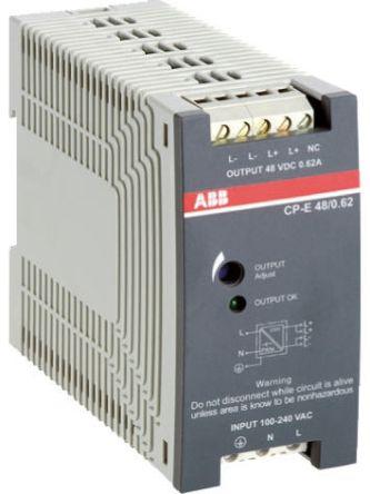 This is CP-E Switch Mode DIN Rail Panel Mount Power Supply 60W 48V dc/ 1.25A manufactured by ABB. The manufacturer part number is 1SVR427031R2000. Additionally, the product is supplied with 1 outputs. It has 48.0 to 55.0v of output voltage adjustment range. Load Regulation - ±0.5%. It has a/an dc output voltage . It carries 1.25 a output current. The product is available in din rail mount configuration. It is a highly efficient product with an 89.0% of high efficiency. The product has +85°c maximum temperature. The product cp-e, is a highly preferred choice for users. Its electrical phase configuration includes 1. It has ac, dc input voltage. In addition, the height is 88.5mm. Furthermore, the product is 40.5mm wide. The product comes in 115mm depth. Its input voltage is 85 → 264v ac. Features a 48 v dc output voltage. While its minimum temperature is -10°c. Feature 60w of power rating. Carries 50mv pk-pk ripple and noise. It comes in switch mode configuration.