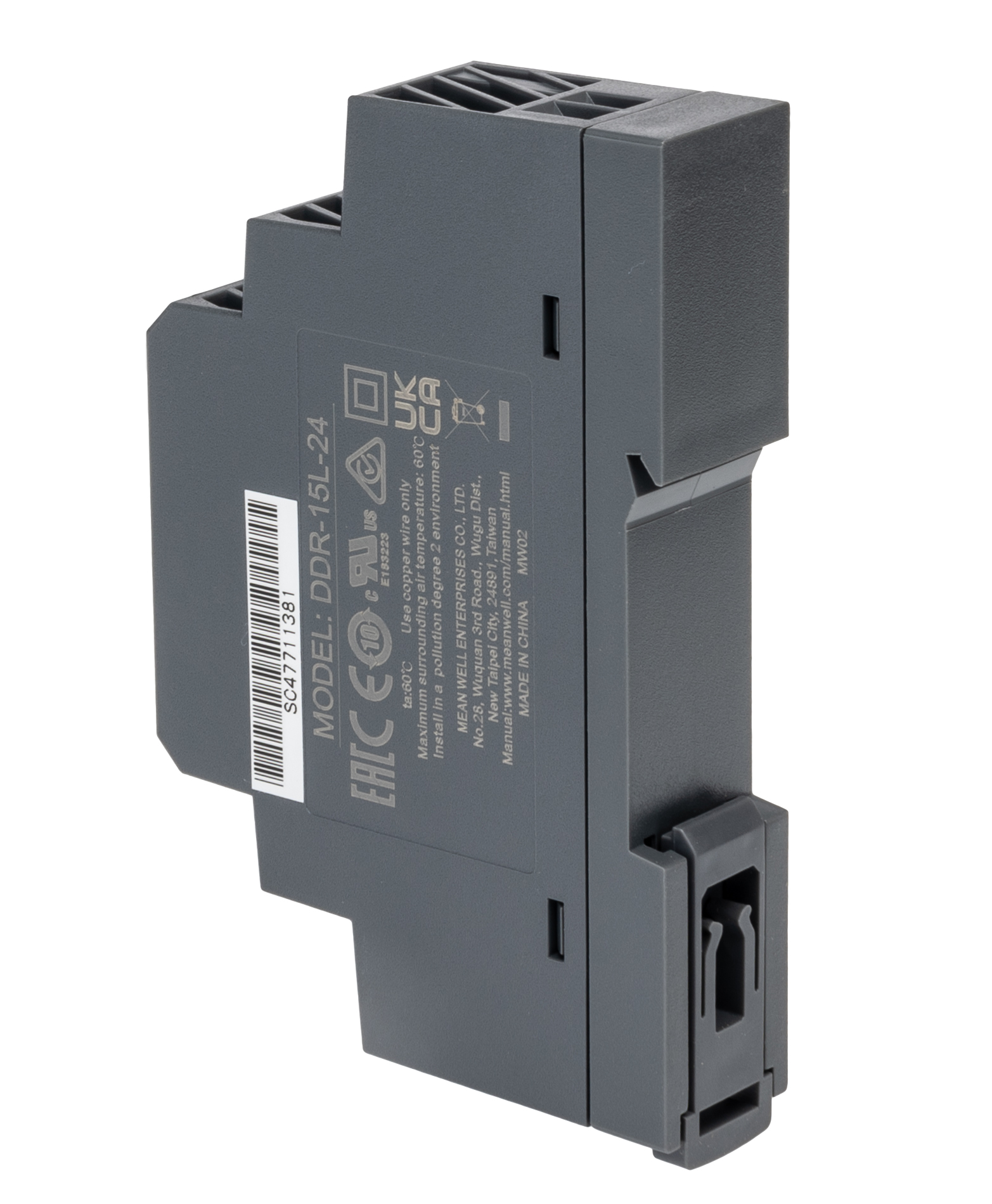 The DDR‑15L‑24 is a slimline 15 W DC/DC converter tailor-made for UK industrial environments, featuring a 4:1 ultra-wide input range (18–75 VDC) and delivering a 24 V/0.63 A output. With a width of just 17.5 mm, this unit slots easily into TS‑35 DIN rail systems. Rated for operation from –40 °C to +85 °C and offering 4 kV isolation, it ensures reliable performance in harsh conditions. Approved to IEC/EN 62368‑1 and UL 62368‑1 standards, the DDR‑15L‑24 is ideal for engineers and installers demanding a dependable, efficient power solution for automation, telecoms, and rail applications.