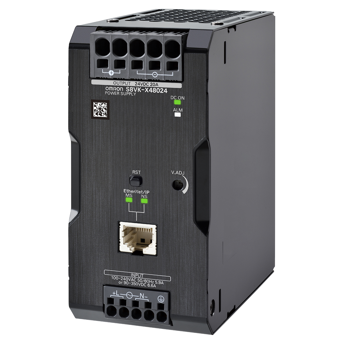 This is S8VK-V Switched Mode Power Supply DIN Rail Panel Mount Power Supply 480W 24V dc/ 20A manufactured by Omron. The manufacturer part number is S8VK-X48024-EIP. The product has +70°c maximum temperature. It has a/an dc output voltage . The given dimensions of the product include 60 x 119.3 x 124.6mm. While its minimum temperature is -40°c. It has ac input voltage. Furthermore, the product is 60mm wide. The MTBF values include 120000h. Its electrical phase configuration includes 1. It comes in switched mode configuration. Load Regulation - 1.5%. The product complies with all safety standards, such as ce, culus, eac, en 61000-3-2, en 61204-3, en/iec 60529, en/iec 61558-2-16, tuv, ul. It is a highly efficient product with an 94% of high efficiency. Its input voltage is 100 → 240v ac. Additionally, the product is supplied with 1 outputs. It has 21.6 → 28v of output voltage adjustment range. Carries 130mv pk-pk ripple and noise. The product comes in 119mm depth. The product also provides special features, such as and more are acquired on the network and can be managed all at once, output current, output voltage, power boost function at 150%, replacement time, status can be checked on-site using the indication monitor. The product is available in din rail mount configuration. It carries 20a output current. The product s8vk-v, is a highly preferred choice for users. In addition, the height is 125mm. Features a 24v dc output voltage.