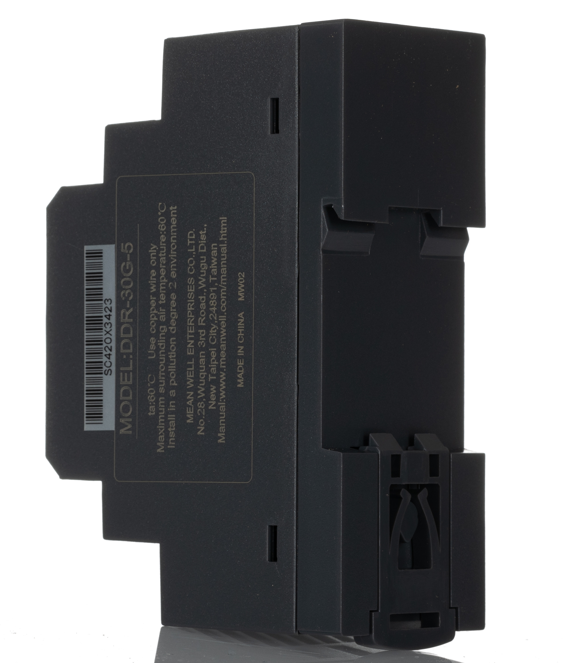 This is DDR-30 DIN Rail Panel Mount Power Supply 30W 5V dc/ 6A manufactured by Mean Well. The manufacturer part number is DDR-30G-5. Additionally, the product is supplied with 1 outputs. It has 4.5 → 5.5v of output voltage adjustment range. Load Regulation - ±1.5%. It carries 6a output current. The product is available in din rail mount configuration. The product has +85°c maximum temperature. The product ddr-30, is a highly preferred choice for users. Furthermore, the product is 35mm wide. The product comes in 54.5mm depth. Features a 5v dc output voltage. While its minimum temperature is -40°c. Feature 30w of power rating.