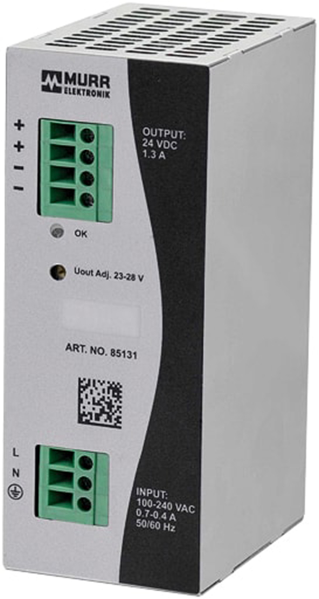 This is Eco-Rail DIN Rail Panel Mount Power Supply Switch Mode 24 V dc 23 → 28 V/ 1.3A manufactured by Murrelektronik Limited. The manufacturer part number is 85131. Additionally, the product is supplied with 1 outputs. Carries 10mv ac ripple and noise. It has a/an dc output voltage . The given dimensions of the product include 50 x 72 x 125mm. The product is available in din rail mount configuration. The product has +55°c maximum temperature. The product eco-rail, is a highly preferred choice for users. Its electrical phase configuration includes 1. It has ac input voltage. In addition, the height is 125mm. Furthermore, the product is 50mm wide. The product comes in 72mm depth. Its input voltage is 90 → 264v ac. Features a 24v dc output voltage. While its minimum temperature is 0°c. It comes in switched mode configuration. It carries 1.3a output current. The product complies with all safety standards, such as culus listed, curus, en 60950-1, en 61000-3-2, en 61204-3.