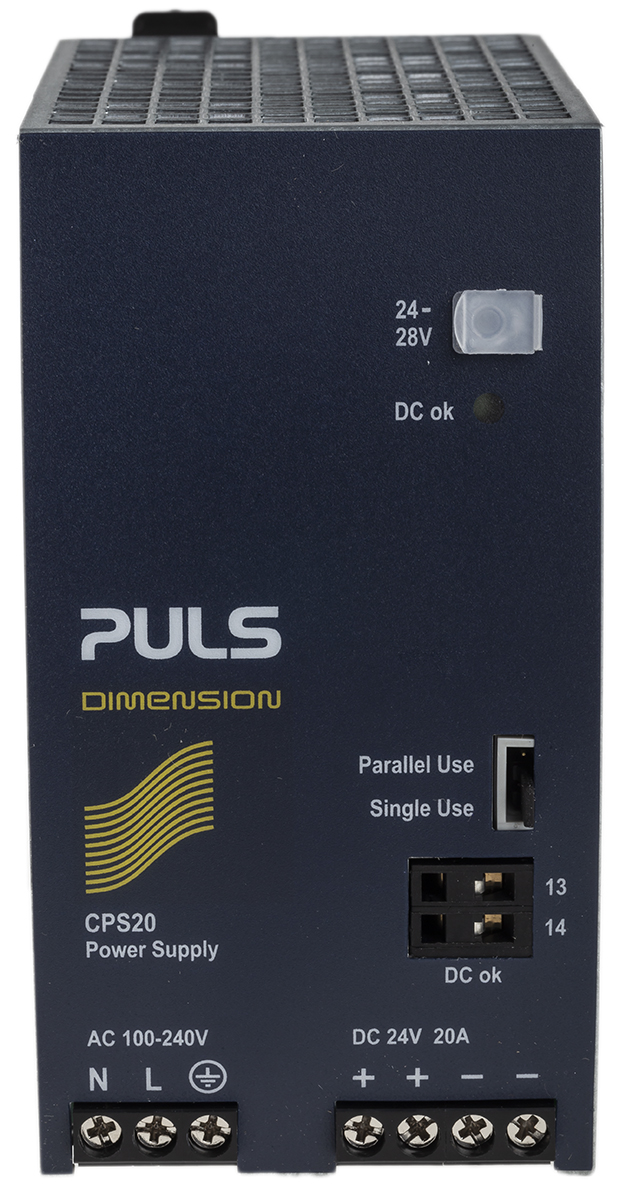 This is DIN Rail Power Supply 24V 20A 480W manufactured by PULS. The manufacturer part number is CPS20.241-C1. The product has +70°c maximum temperature. It has a/an dc output voltage . The given dimensions of the product include 65 x 127 x 124mm. While its minimum temperature is -25°c. It has ac input voltage. Furthermore, the product is 65mm wide. The MTBF values include 100h. Its electrical phase configuration includes 1. Load Regulation - 100mv. The product complies with all safety standards, such as atex en 60079-0, atex en 60079-15, ce certified, cruus ul 60950-1, csaus ansi/isa 12.12.01-2007, culus listed, gl certified, iecee iec 60950-1, iecex iec 60079-0, iecex iec 60079-15, ul 508. It is a highly efficient product with an 94% of high efficiency. Its input voltage is 100 → 240v ac. Additionally, the product is supplied with 1 outputs. It has 24 → 28v of output voltage adjustment range. Carries 50mv pk-pk ripple and noise. The product is certified with atex, iecex hazardous area certification. The product comes in 127mm depth. The product also provides special features, such as active power factor correction (pfc). The product is available in din rail mount configuration. It carries 20a output current. The product c, is a highly preferred choice for users. In addition, the height is 124mm. Features a 24v dc output voltage.