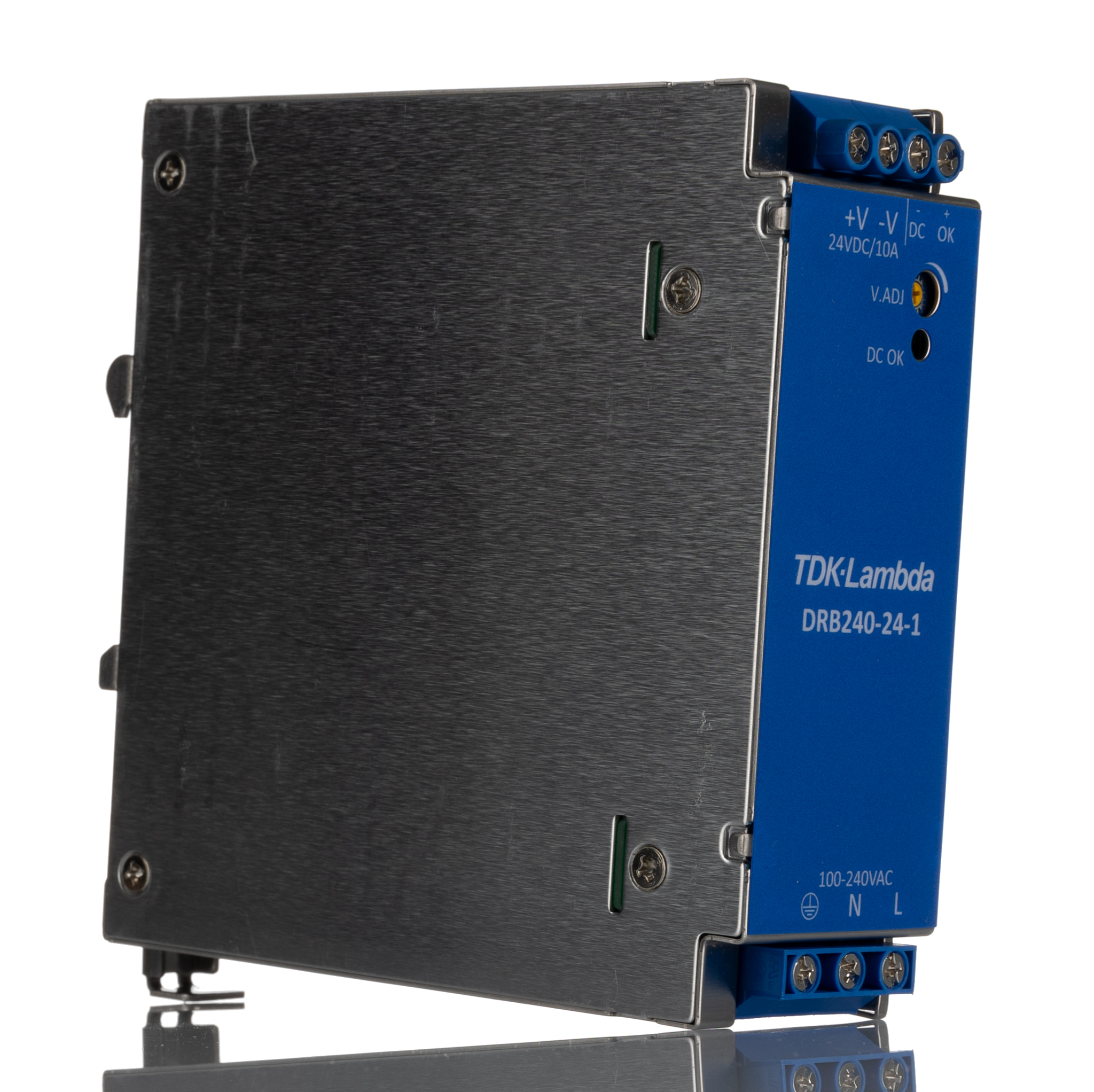 This is DIN Rail Power Supply 24V 10A 240W manufactured by TDK-Lambda. The manufacturer part number is DRB-240-24-1. The product has +70°c maximum temperature. It has a/an dc output voltage . The given dimensions of the product include 41 x 125 x 124mm. While its minimum temperature is -25°c. It has ac input voltage. Furthermore, the product is 41mm wide. Its electrical phase configuration includes 1. It comes in switched mode configuration. Load Regulation - <1%. The product complies with all safety standards, such as ce mark, cispr11-b, cispr22-b, en/ul/csa62368-1, en55011-b, en55032-b, en61204-3 class a, iec/en/ul/csa60950-1, iec/en62477-1, ul508. It is a highly efficient product with an 93% of high efficiency. Its input voltage is 85 → 264v ac. Additionally, the product is supplied with 1 outputs. It has 24 → 28v of output voltage adjustment range. Carries <1% ripple and noise. The product comes in 125mm depth. The product also provides special features, such as curve b conducted & radiated emi, easier system integration, high efficiency, more space in control equipment, narrow width, saves energy & cost. It carries 10a output current. The product is available in din rail mount configuration. The product drb120-480, is a highly preferred choice for users. In addition, the height is 124mm. Features a 24v dc output voltage.