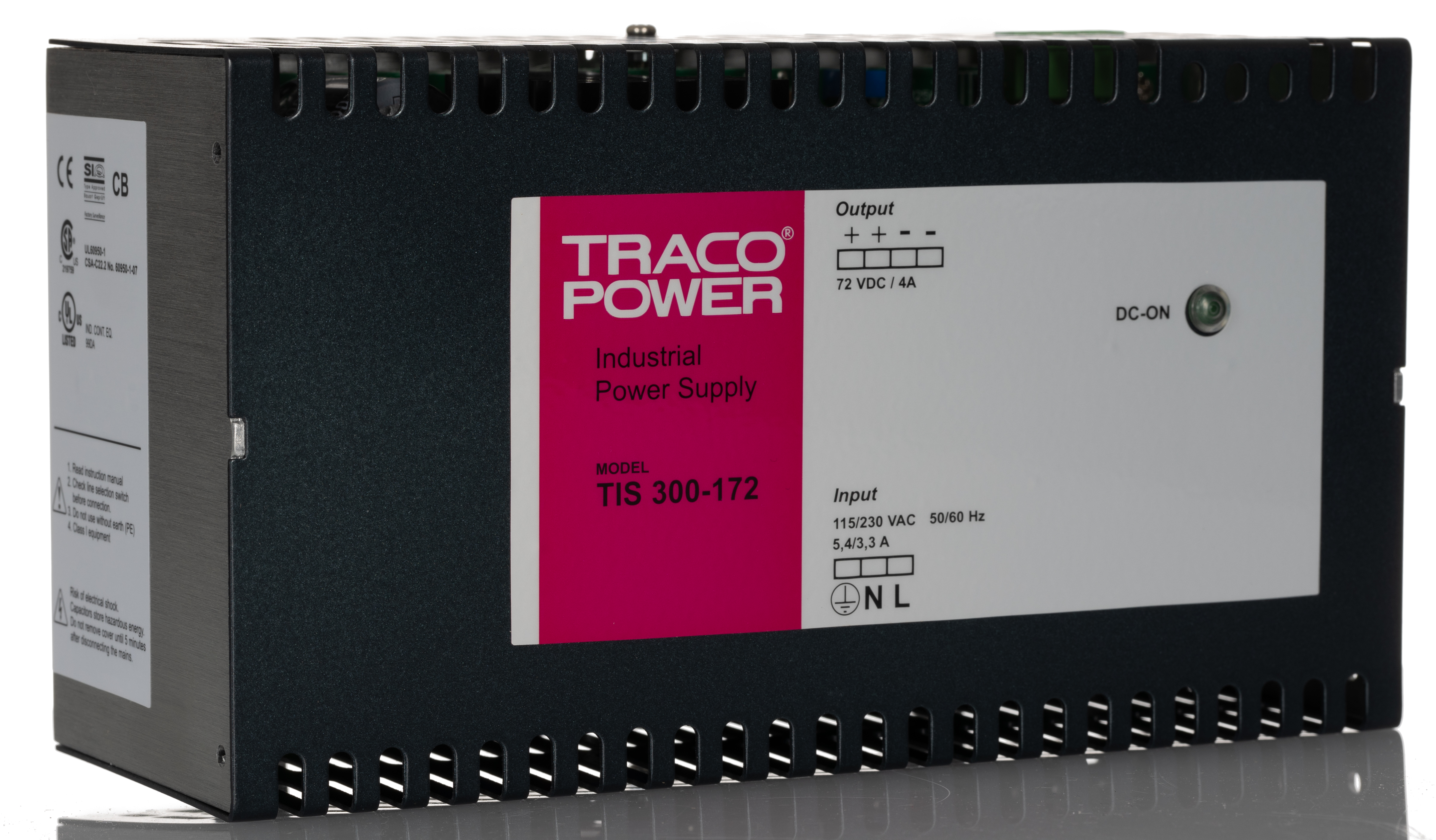 This is DIN Rail Panel Mount Power Supply - 115/230V Input Voltage 72V Output Voltage 4.2A Output Current manufactured by TRACOPOWER. The manufacturer part number is TIS 300-172. The product has +70°c maximum temperature. It has a/an dc output voltage . While its minimum temperature is -25°c. It has ac input voltage. Furthermore, the product is 83mm wide. The MTBF values include 360000h. Load Regulation - 0.3%. The product complies with all safety standards, such as ce. It is a highly efficient product with an 85% of high efficiency. Its input voltage is 115 v ac, 230v ac. Additionally, the product is supplied with 1 outputs. It has 60 → 76v of output voltage adjustment range. Carries 50mv pk-pk ripple and noise. The product comes in 207mm depth. The product also provides special features, such as 3-years warranty. The product is available in din rail mount configuration. It carries 4.2a output current. The product tis, is a highly preferred choice for users. In addition, the height is 114.6mm. Features a 72v dc output voltage.