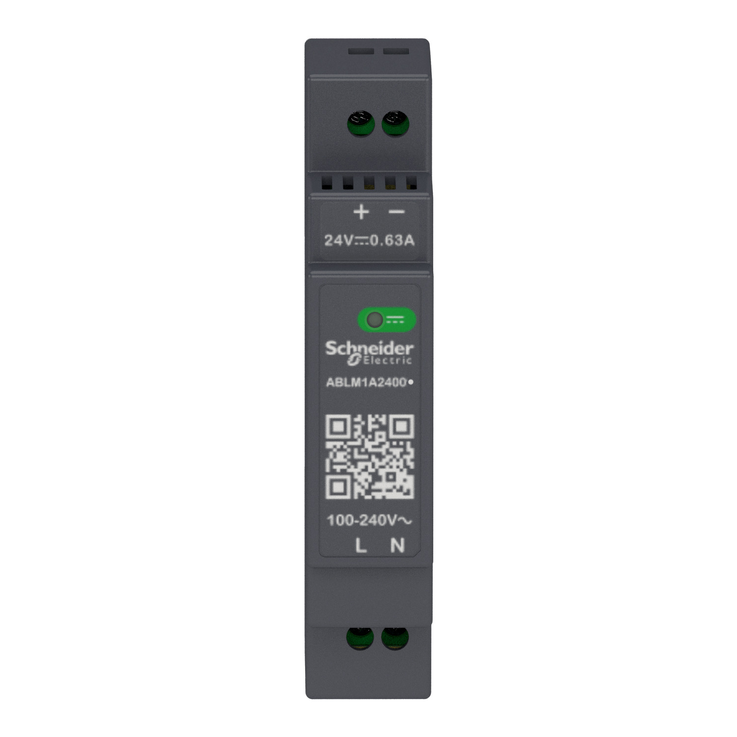 This is ABLM1A DIN Rail Power Supply 100 → 240V ac Input 24V Output 625mA manufactured by Schneider Electric. The manufacturer part number is ABLM1A24006. It has a/an dc output voltage . It carries 625ma output current. The product is available in din rail mount configuration. The product modicon, is a highly preferred choice for users. It has ac input voltage. In addition, the height is 91mm. Furthermore, the product is 18mm wide. The product comes in 55.6mm depth. Its input voltage is 240v ac. Features a 24v dc output voltage. It comes in switched mode configuration.