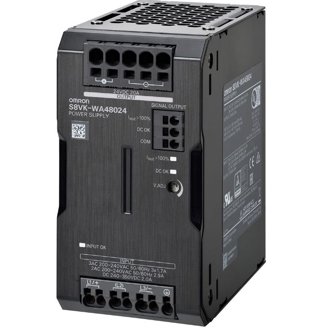 This is S8VK-W DIN Rail Power Supply 480V Input 24V Output 20A manufactured by Omron. The manufacturer part number is S8VK-WA48024. It has a/an dc output voltage . It carries 20a output current. The product is available in din rail mount configuration. The product s8vk-w, is a highly preferred choice for users. It has ac input voltage. In addition, the height is 124mm. Furthermore, the product is 65mm wide. The product comes in 111.4mm depth. Its input voltage is 380 → 480v ac. Features a 24v dc output voltage. It comes in switched mode configuration.
