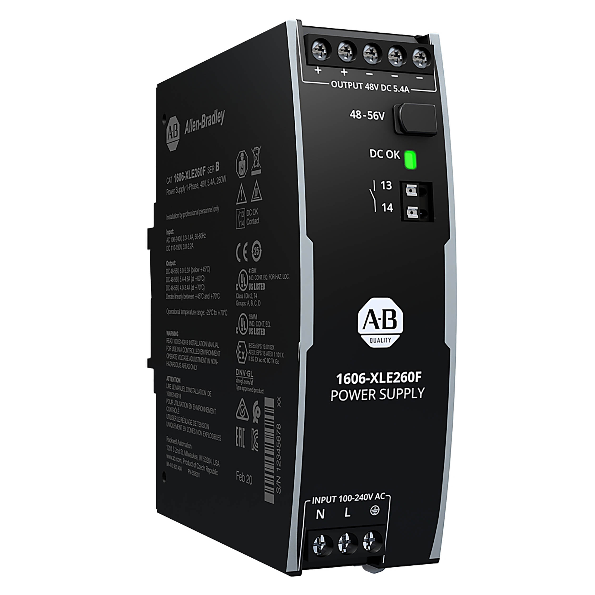 This is 1606 DIN Rail Power Supply 100 → 240 V ac 110 → 150 V dc Input 48V Output 5.4A manufactured by Rockwell Automation. The manufacturer part number is 1606-XLE260F. It has a/an dc output voltage . It carries 5.4a output current. The product is available in din rail mount configuration. The product 1606, is a highly preferred choice for users. It has ac, dc input voltage. In addition, the height is 124mm. Furthermore, the product is 39mm wide. The product comes in 117mm depth. Its input voltage is 100 → 240 v ac, 110 → 150 v dc. Features a 48v dc output voltage. It comes in switched mode configuration.