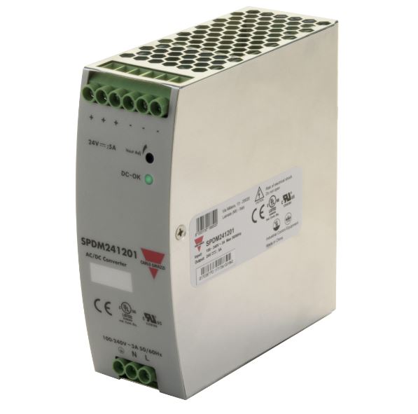 This is SP DIN Rail Power Supply 240V ac Input 24V Output 5A manufactured by Carlo Gavazzi. The manufacturer part number is SPDM241201. It has a/an dc output voltage . It carries 5a output current. The product is available in din rail mount configuration. The product sp, is a highly preferred choice for users. It has ac input voltage. In addition, the height is 124mm. Furthermore, the product is 45mm wide. The product comes in 119mm depth. Its input voltage is 240v ac. Features a 24v dc output voltage. It comes in switched mode configuration.